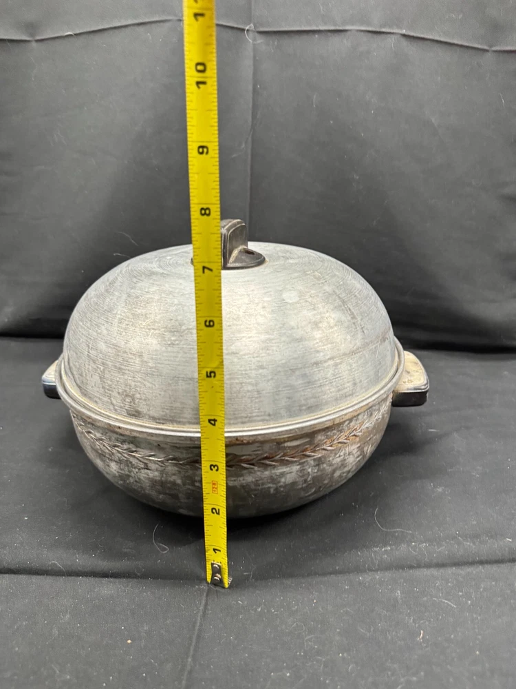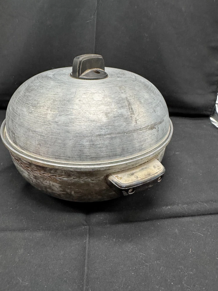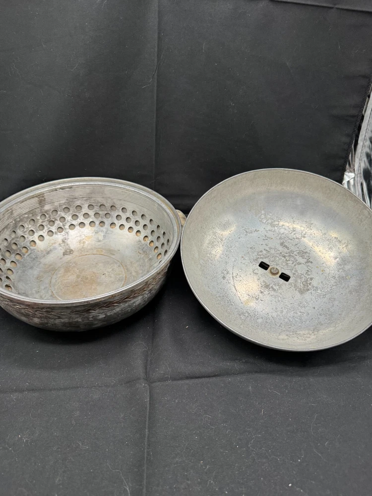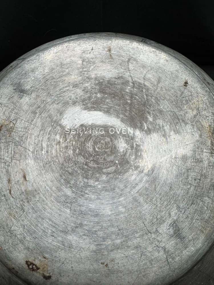 Vintage Cooking Pot, Vintage Steamer with vented lid, West Bend Casserole, Stove Top Pan, Vintage Cookware, Serving Oven, vintage Kitchen Nice item that still can be used for cooking or it can be used as a display on the stove top for that eye catching vintage look! One of a kind pan! Material: aluminum pot, lid and insert, bakelite handles. Brand: Stamped on bottom Serving Oven, Trademark, West Bend Aluminum CO., West Bend WIS, PAT. NO. 2170904 Dimensions appr: diameter top: 9.5" without handles (11" with handles), diameter bottom: 6", height 7" with handle. Weight: 1 lb, 5 oz (=597 grams) very lightweight. The pan consists 3 parts: the pot itself, the insert that is removable, and the lid. The lid fits well and moves easily to allow the steam to stay in the pot when cooking or can turn the handle on the lid a little and the pan will be vented to let steam escape.