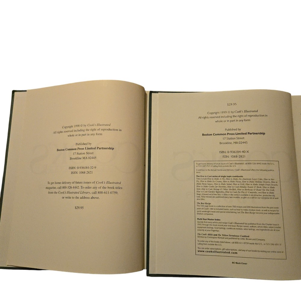 This product is a lot of two vintage Cook's Illustrated recipe books from 1998 and 1999. The books contain illustrated recipes and cooking tips.