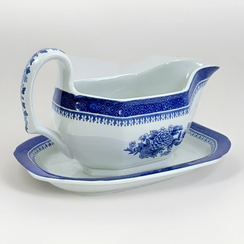 Vintage Copeland Spode Fitzhugh Blue Gravy Boat w/ Attached Under Plate 4.5" ❤️Measurement: Height: 4.5 inches Tall Width: 7x5 inches in diameter Weight: 16Oz ❤️Excellent condition. Used for display only. Free from chips, cracks or repairs. Please review all attached photos for more details and feel free to reach out for any questions. ❤️Free shipping with bundle of care and ship right away🚚🚚 ❤️Thank you🙏