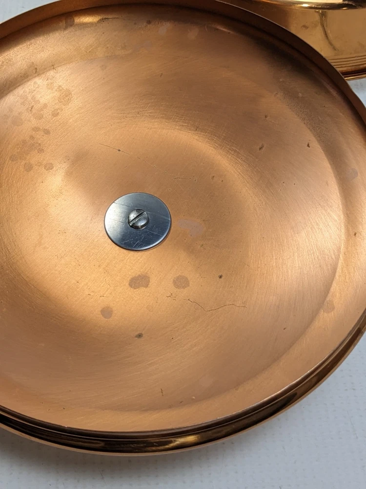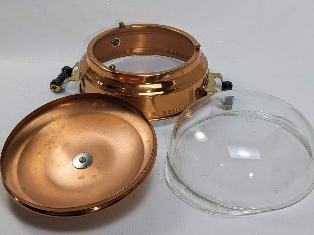 Vintage cookware serve ware set with a glass Pyrex bowl insert. Set includes 3 pieces This Coppercraft Guild covered serving dish was made in 1973. It also has the original Pyrex baking dish. The company was in business from 1973 to 1978 and closed abruptly in 1978. It was sold usually at parties Tupperware style. Uniquely to these pieces is the "special coating" that protects the shine. Pre-owned item, used condition showing signs of wear and use. All images provided accurately represent the item(s) you will receive and should be regarded as an integral part of the description. We encourage you to carefully review each image. If you have any questions or need further details about this listing, please feel free to reach out to us.