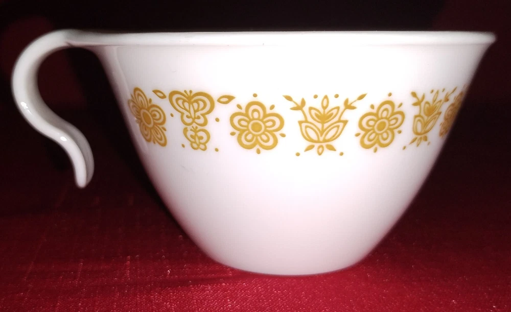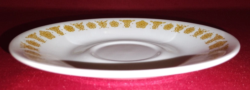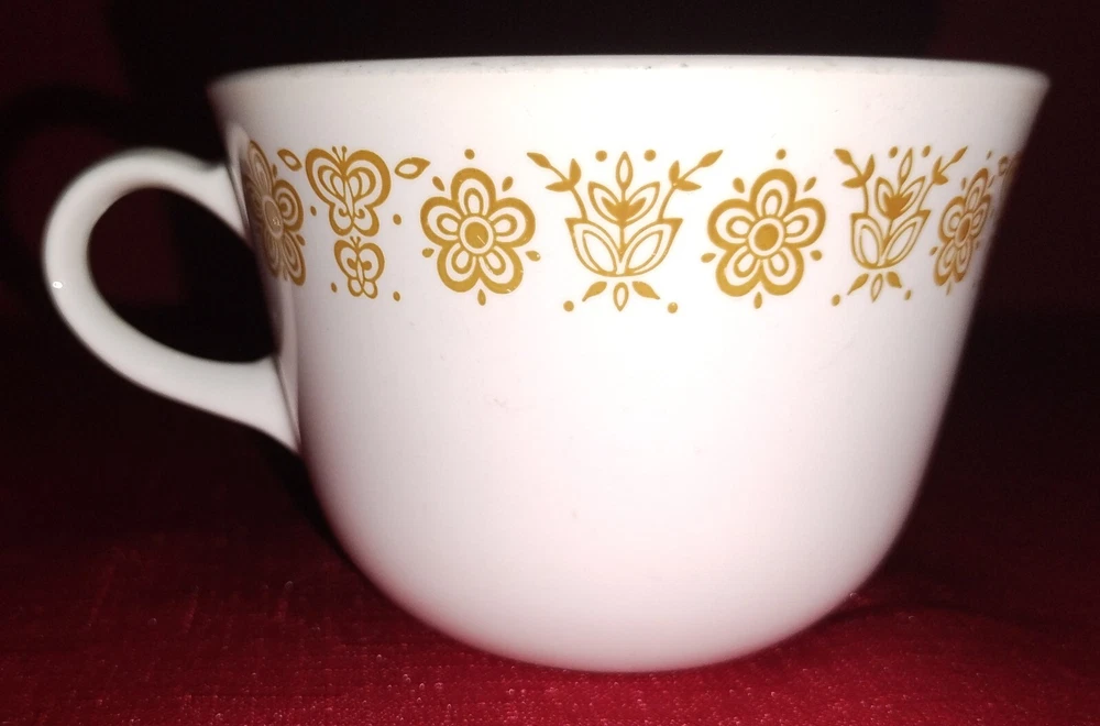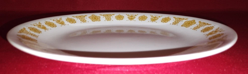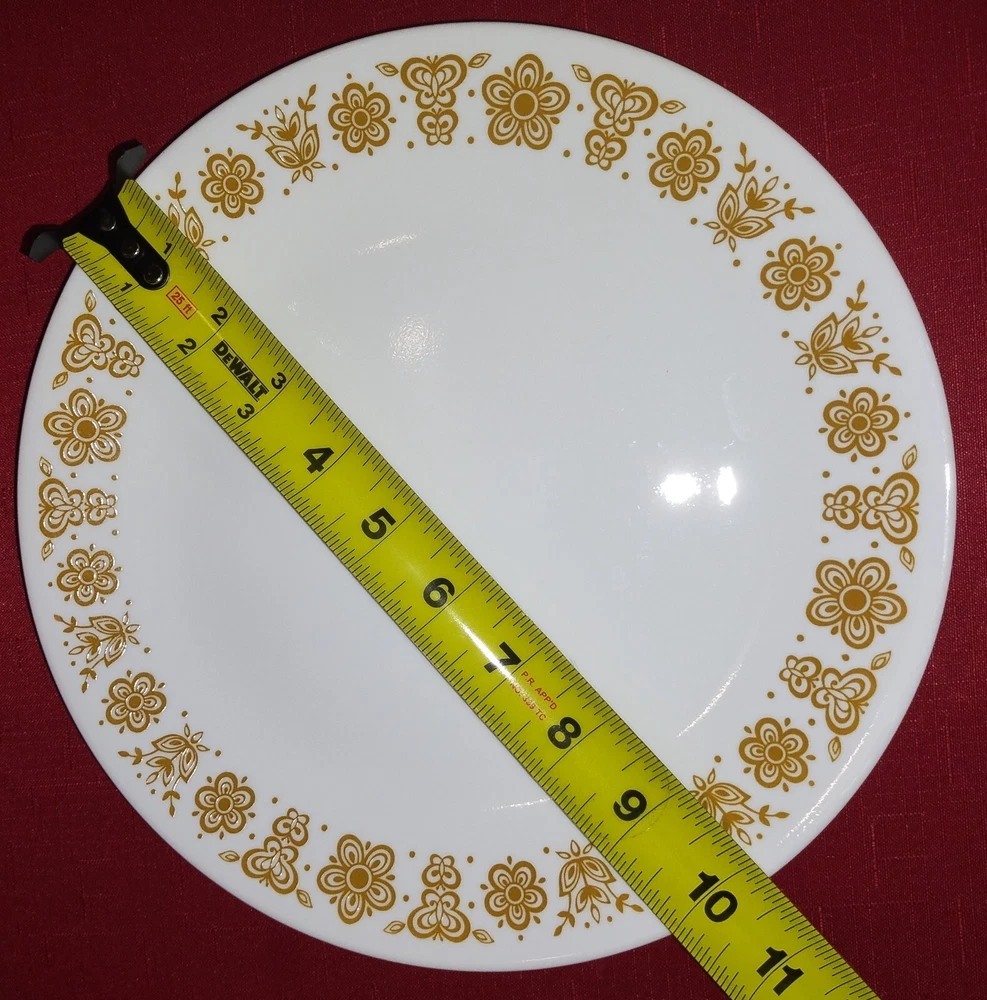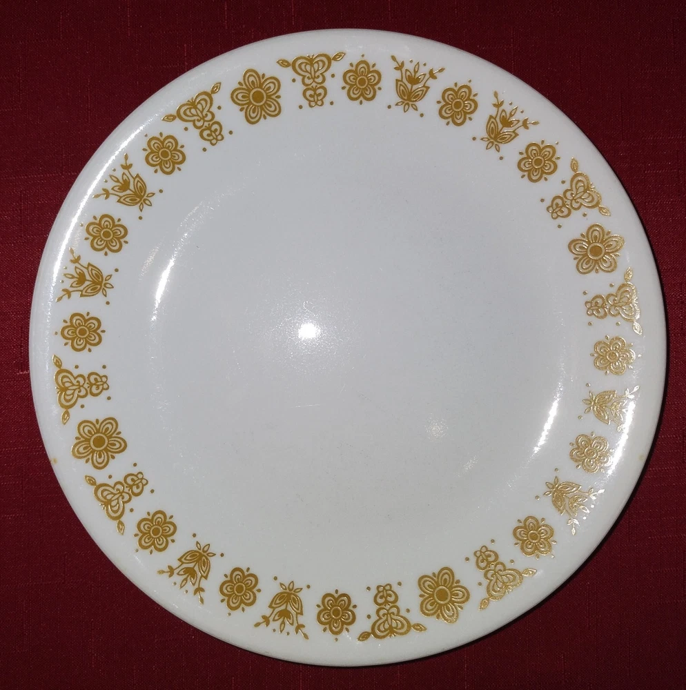 Add a touch of vintage charm to your dinnerware collection with this beautiful Corelle Corning Butterfly Gold dinner plate. The round plate features a stunning butterfly and floral pattern in a vibrant gold color, making it perfect for all occasions. Crafted from high-quality pressed glass material, this plate is both break-resistant and dishwasher safe, ensuring easy maintenance. The plate is part of the Butterfly Gold product line and was manufactured in the United States in the 1970s using a fused glass production technique. It comes with a printed backstamp and is perfect for collectors or anyone looking to add a touch of Mid-Century Modern style to their home decor. Order yours today and enjoy the beauty and functionality of this vintage dinner plate.