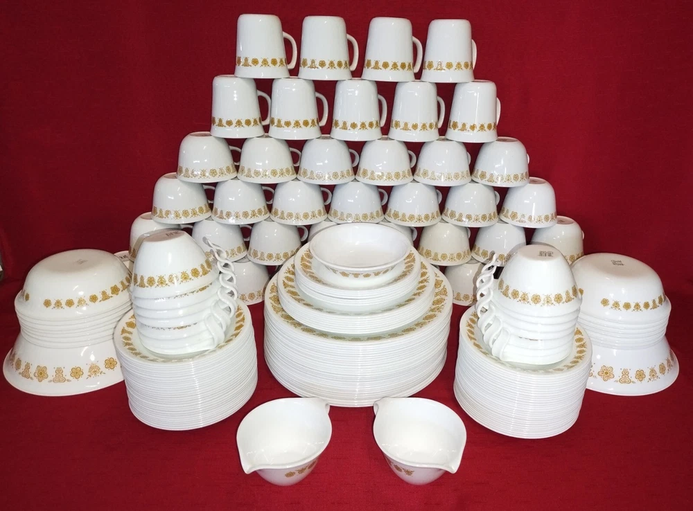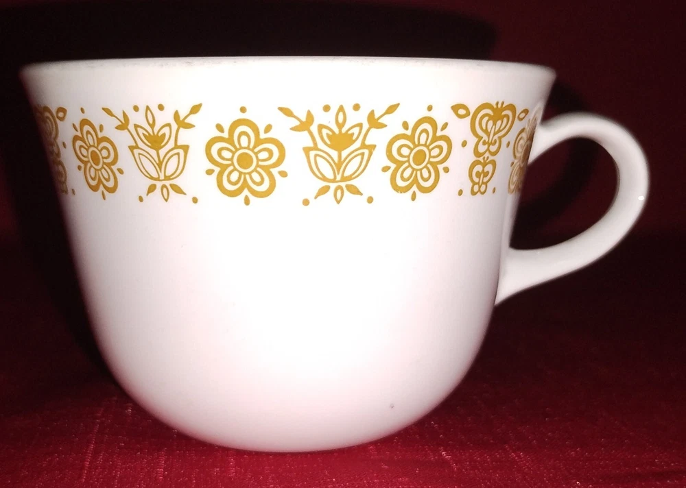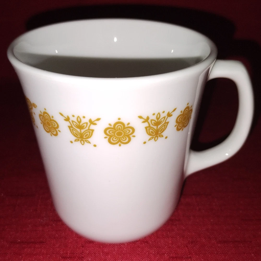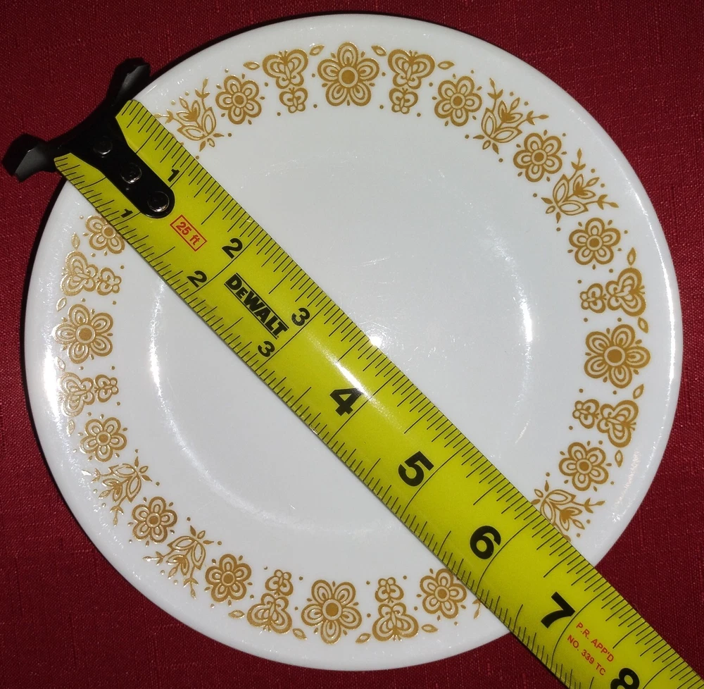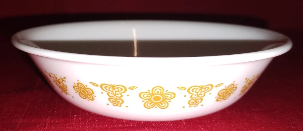 Add a touch of vintage charm to your dinnerware collection with this beautiful Corelle Corning Butterfly Gold dinner plate. The round plate features a stunning butterfly and floral pattern in a vibrant gold color, making it perfect for all occasions. Crafted from high-quality pressed glass material, this plate is both break-resistant and dishwasher safe, ensuring easy maintenance. The plate is part of the Butterfly Gold product line and was manufactured in the United States in the 1970s using a fused glass production technique. It comes with a printed backstamp and is perfect for collectors or anyone looking to add a touch of Mid-Century Modern style to their home decor. Order yours today and enjoy the beauty and functionality of this vintage dinner plate.