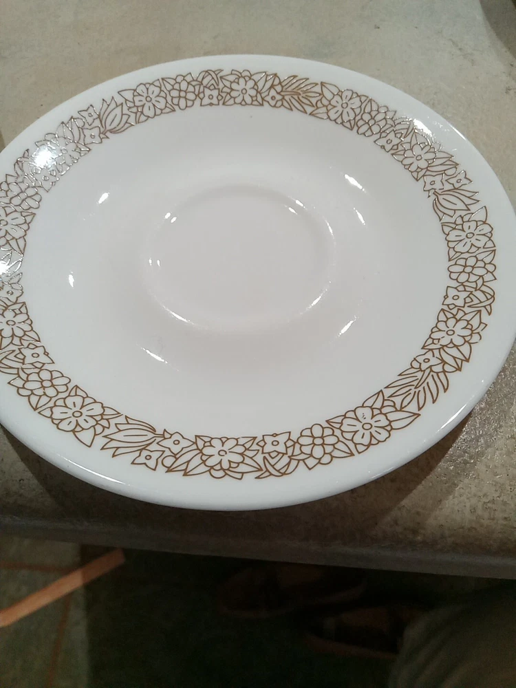 Enhance your collection with this charming four-piece vintage bowl set from Corelle. The round-shaped plates feature a beautiful woodland pattern in brown and white, making them perfect for all occasions. The set includes 4 plates, each with an item diameter of 8.5 inches, and all made from high-quality pressed glass. This original Corelle product is an antique from the 1970s, with no California Prop 65 warning. The bowls are in nice condition and have a printed backstamp. The care instructions require hand washing only. Add these unique, handcrafted bowls to your decorative cookware, dinnerware, and serveware collection today. Additional corelle at my store