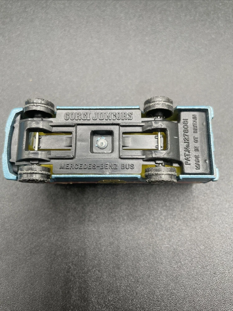 Vintage Corgi Juniors Mercedes-Benz School bus match box blue Great Britain car . Condition is Used. Shipped with USPS Ground Advantage.