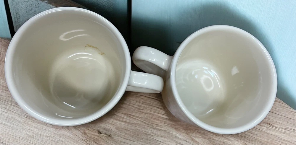 See pictures. There is a stain in the bottom of one of the mugs. Unable to get it off. Add a touch of vintage charm to your collection with this set of four Corning Country Goose Promenade coffee and tea cups. These limited edition mugs feature a round shape with a goose pattern and are made of durable, break/chip-resistant fused glass. Each mug has a 3-inch diameter and height, with a comfortable handle for easy grip. Not only are these mugs functional for everyday use, but they are also decorative with a glossy finish and printed backstamp. They are microwave and dishwasher safe for easy maintenance. Perfect for all occasions, these Corelle brand tea mugs are an original production from the United States and are a must-have for any collector.