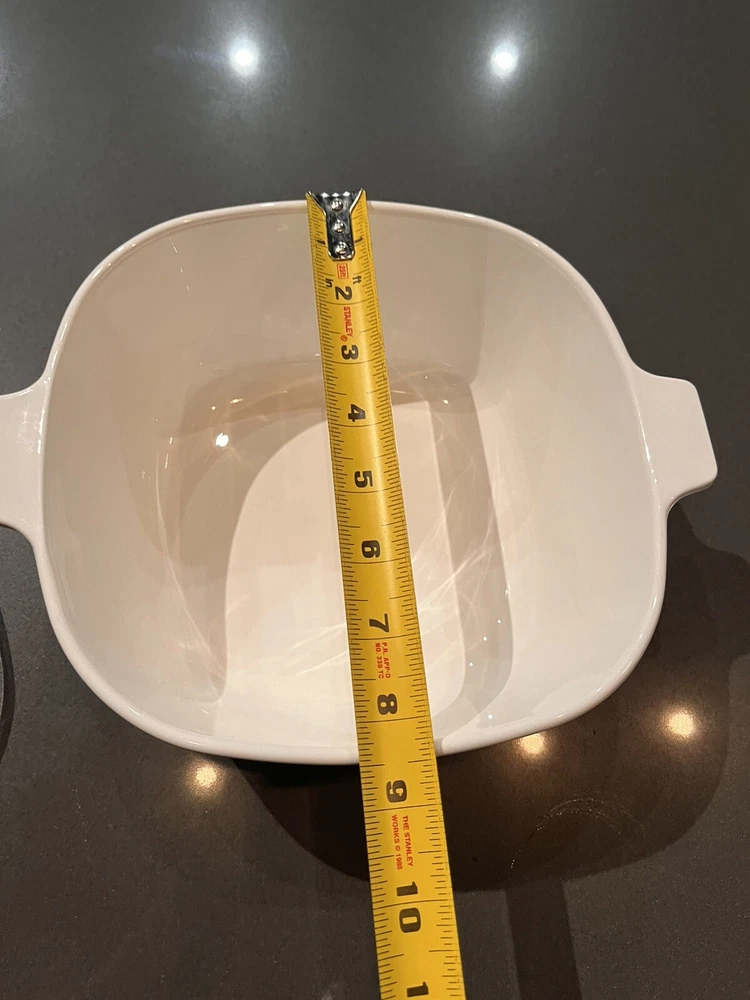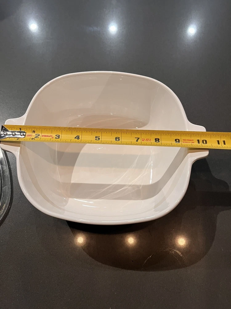Finish:GlossyFeatures:With LidTime Period Manufactured:1960-1969Capacity:2 1/2 quartBrand:CorningWareBackstamp:PrintedItem Length:10.25" handle to handleOriginal/Licensed Reproduction:OriginalOrigin:USAType:CasseroleColor:White and BlueVintage:YesCountry/Region of Manufacture:United States