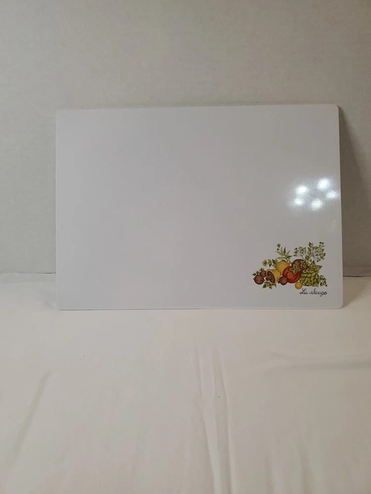 WILL SHIP IN A STURDY BOX. WE WILL COMBINE SHIPPING ON MULTIPLE ITEMS IF POSSIBLE. PLEASE CHECK OUT OUR OTHER ITEMS. THANKS FOR LOOKING. We ship 6 days a week. Most shipping is done with 24 business hour. We strive for excellent customer service. Add a touch of vintage flair to your kitchen with t his medium-sized cutting board from Corning Ware's Spice of Life La Sauge collection. The solid white rectangular board measures 14 inches in length and 10 inches in width, providing ample space to chop and slice with ease. Crafted from a mix of glass and ceramic, this cutting board boasts durability and longevity, making it a reliable addition to your kitchen tools and gadgets collection. The retro and lounge theme of the board adds a unique touch to your kitchen décor, and the brand's reputation for quality ensures you're getting a product that will last. Whether you're an avid cook or simply need a reliable cutting board for daily use, this Corning Ware board is a practical and stylish choice.