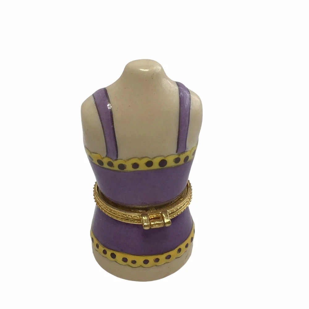 Condition: Pre owned, very good condition, see photos Size: 3 1/3" tall, 1 3/4" across, 1 3/4" front to back Quantity: 1 Bustier Trinket Box available now Thank you for coming to shop with us! We welcome you to check out other items in our store. WE APPRECIATE YOUR BUSINESS! This is a woman-owned enterprise!