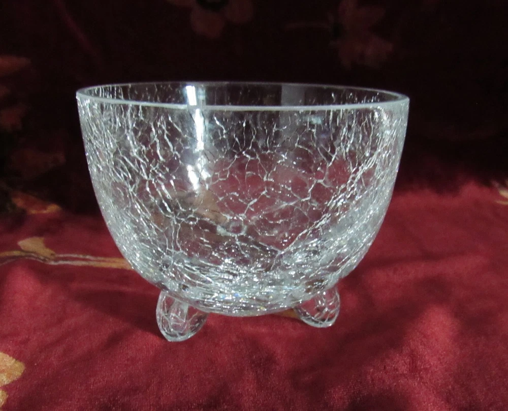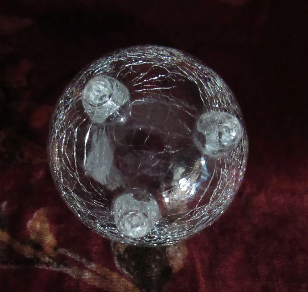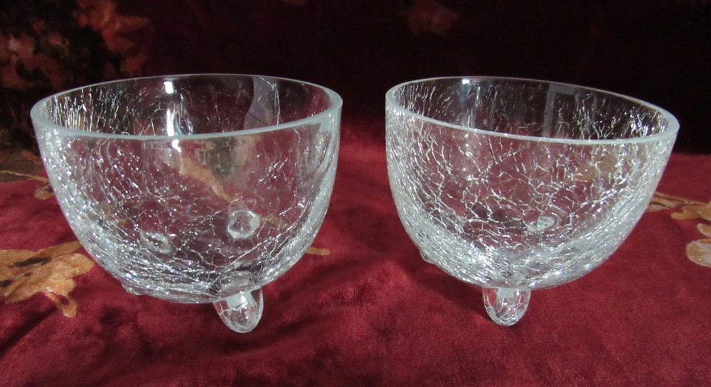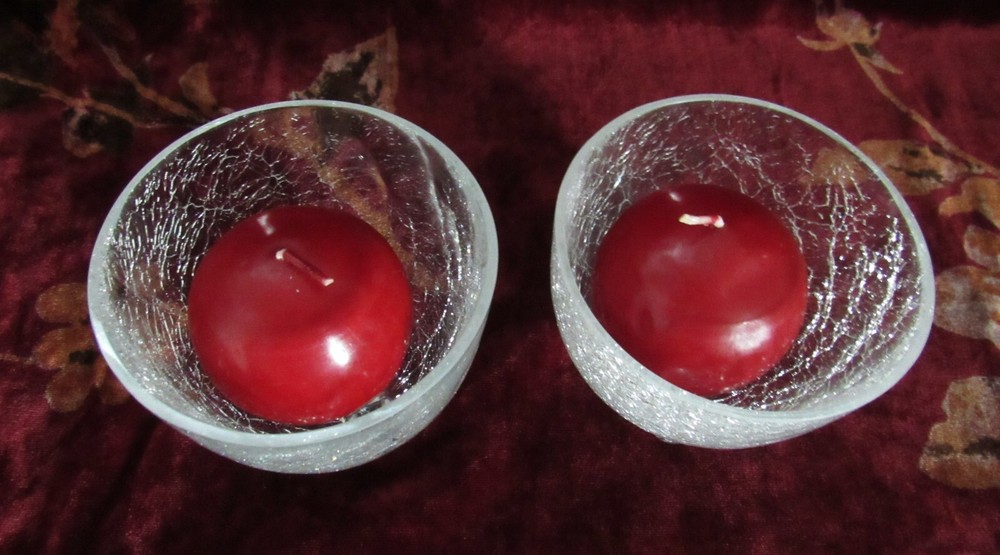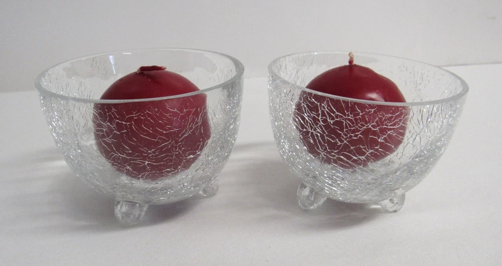 Pair of Crackle Glass Tea Light Votive Candle Holders - Heavy Gauge - EUC. Pair of Crackle Glass Tea Light Votive Candle Holders in heavy gauge glass . Each is 3 3/4 inches wide, 2 3/4 inches high, with a 2 inch "tri-pod" base. No chips, cracks or repairs, and in Excellent Used Condition. Minor marks may exist from use and age - see pictures for detail. This will make an excellent addition to any Votive Candle or Glass collection. CANDLES NOT INCLUDED. Ships via USPS Ground Advantage Mail for a flat amount. - Please review all pictures as these are part of the description of this item - Please pay for item within three days of purchase - Feedback is highly appreciated - Message me with any questions before purchase