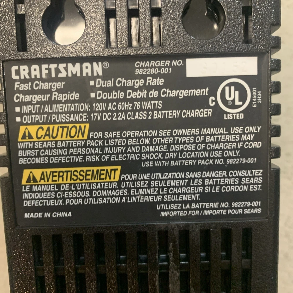 Vintage Craftsman 15.6V Drill With Fast Charger. Models 973.222600 & 982280-01