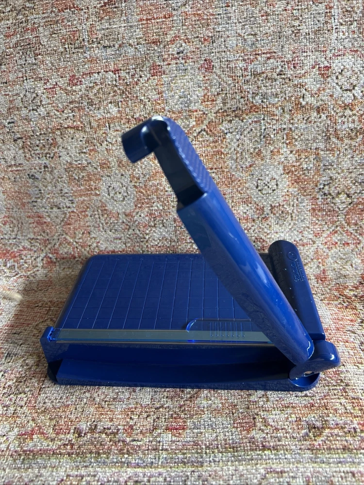 Gently Used. Personal size trimmer. This was the first/original trimmer made for the Creative Memories collection. No box. Very good condition. Please note: 3 of the black round pads on bottom of trimmer are missing. Sold as is. Please see photos for more details.
