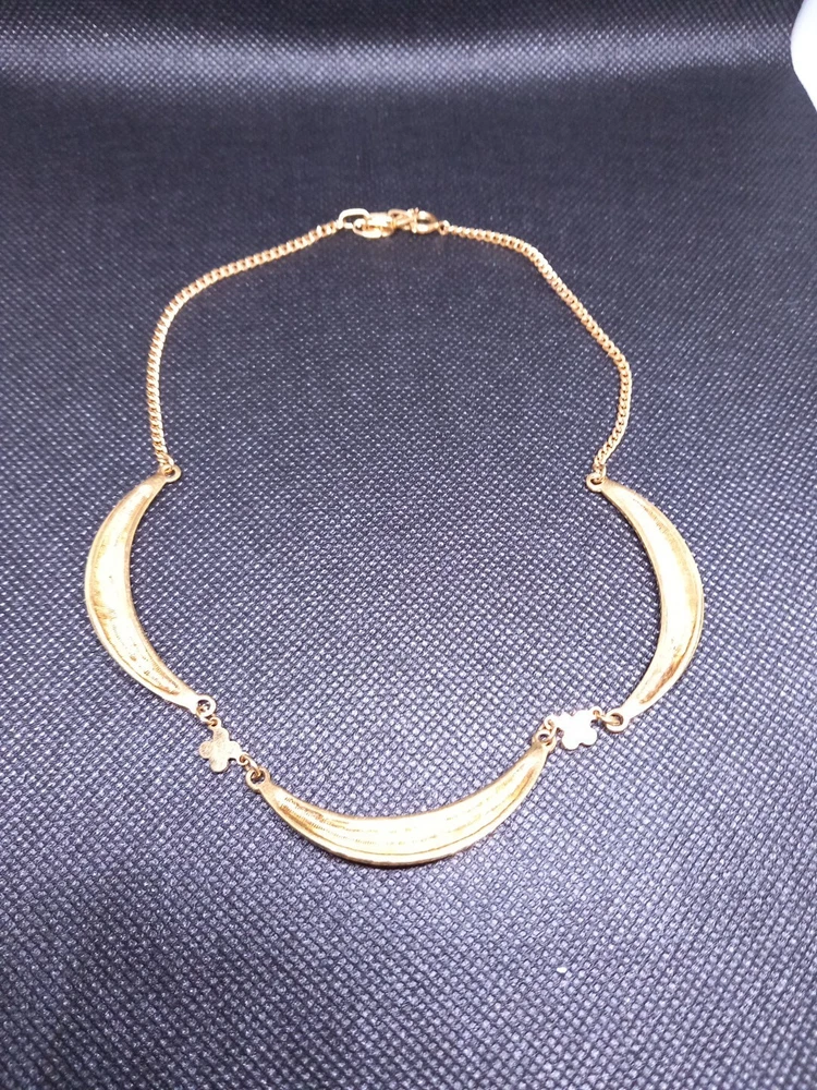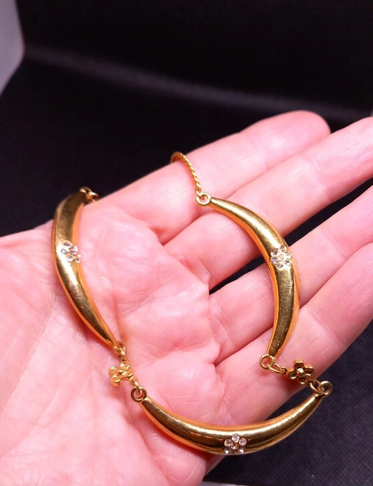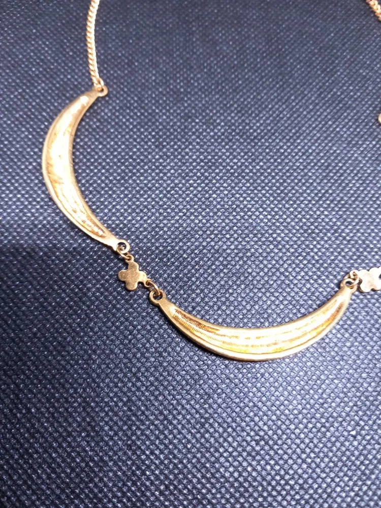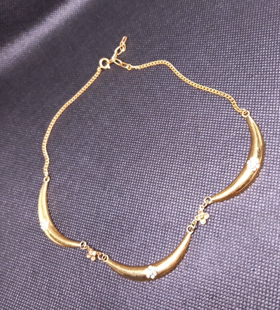 Item: Fab necklace. Flat lay design with alternate shiny and matt surfaces.15" 38cm. Spring ring clasp. Sparkly rhinestones. Condition: Good unused condition, some signs of wear from being in storage: see photos. DISPLAY BOX/STAND NOT INCLUDED.
