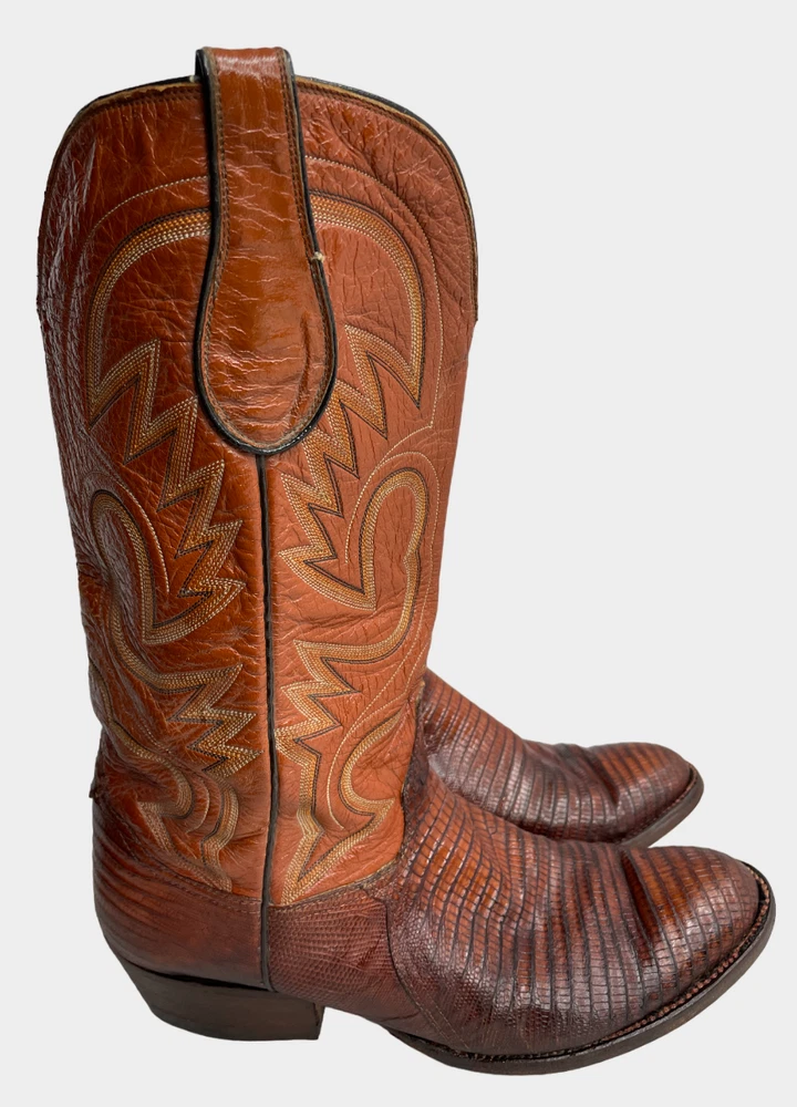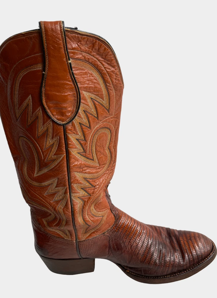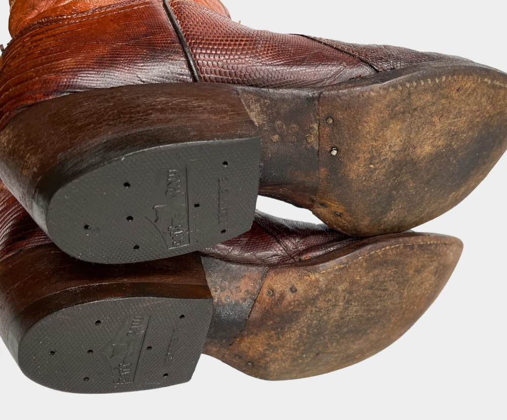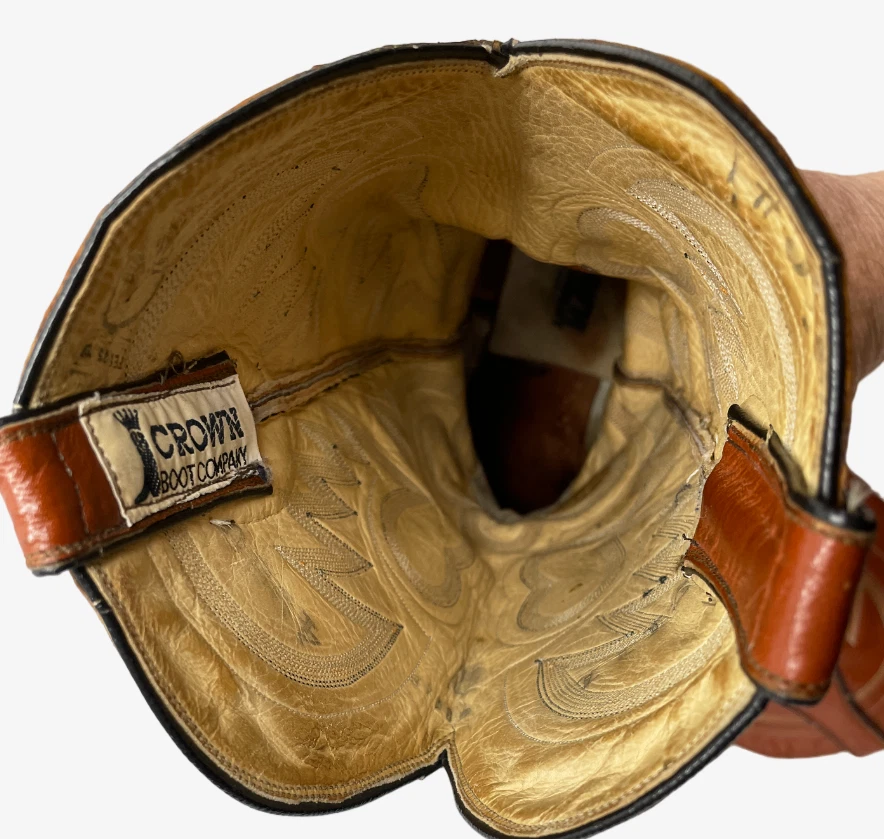Vintage Crown Boot Company Brown Lizard Leather Western Cowboy Boots Men's 8