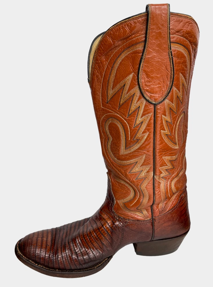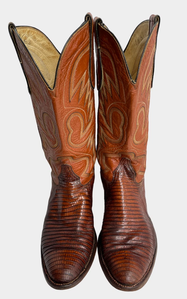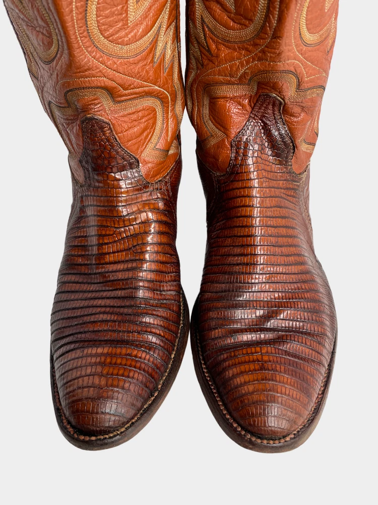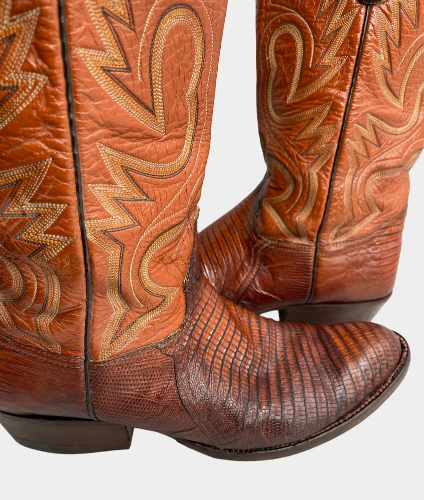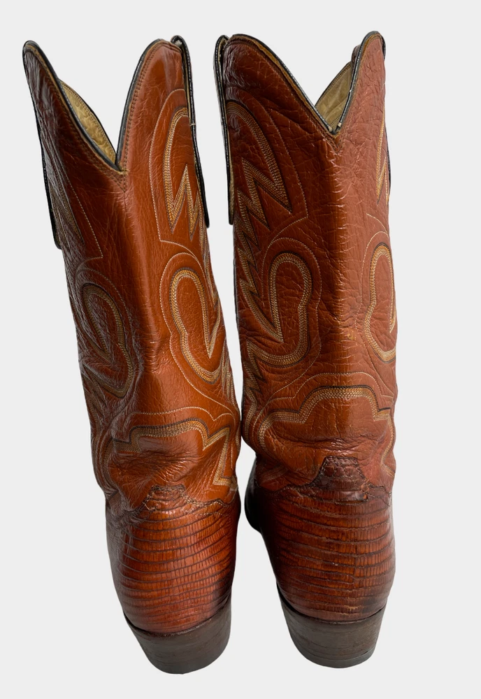 Vintage Crown Boot Company Brown Lizard Leather Western Cowboy Boots Men's 8