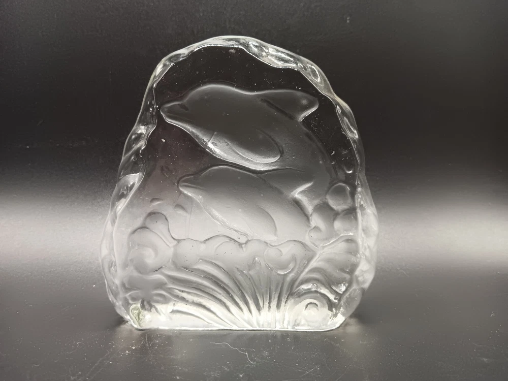 Material: Crystal Glassmaking Technique: Etched Brand: Unkown Origin: unknown Color: Clear Style: Eclectic Time Period Manufactured: Unknown Country/Region of Manufacture: China Theme: Dolphin Original/Licensed Reproduction: Original Era: Unknown Object Type: Paperweight Type of Glass: Crystal Handmade: Yes Production Technique: art glass Vintage: Yes Subject/Theme: Dolphins MPN: Does not apply Original/Reproduction: Vintage Original Features: Etched Production Style: Art Glass Type: Paperweight