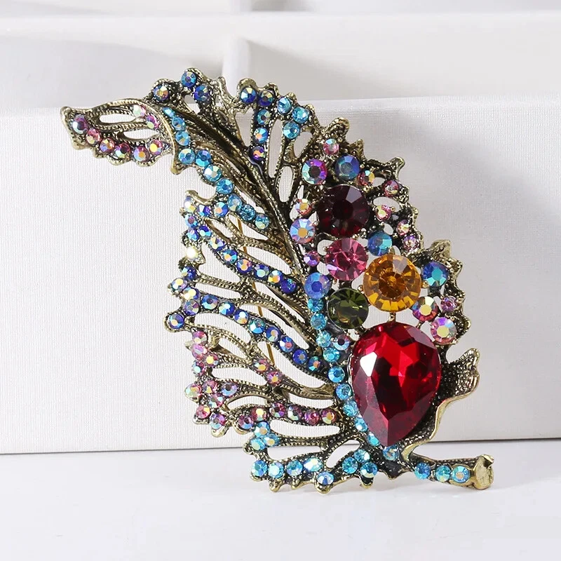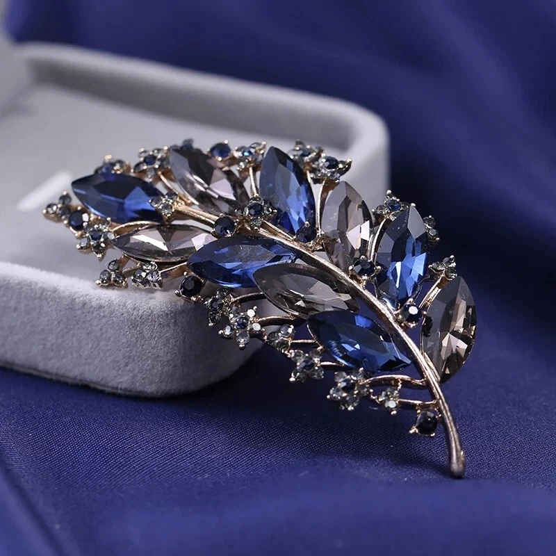 Vintage Crystal Leaf Brooch for Women Wedding Party Floral Pin