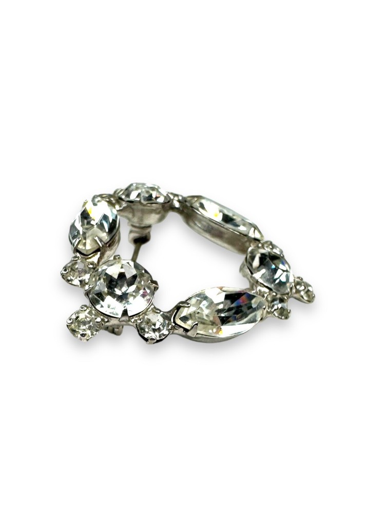 This vintage brooch is a stunning piece of jewelry that measures 1.5" x 1.5". It features a prong setting style with a beautiful sparkling crystals. This brooch is a great addition to any jewelry collection and can be worn with any outfit. It is unsigned but its beauty speaks for itself. The silver color of this brooch makes it suitable for any occasion and the crystals add a touch of elegance. Whether you're looking for a vintage or antique piece of jewelry, this brooch fits the bill. In great ready-to-wear condition with no missing or chipped crystals. Sold as-is. Any additional cleaning or polishing is at the discretion of the buyer. Stands and displays are not for sale, and are used for photographing purposes. The packaging of each order is recorded and photos are also taken during the process. This is to ensure that both us and you, the buyer, are covered should anything happen to the package during the shipping process or during delivery. We attempt to describe each item to the best of our knowledge, however, please review all photos and ask questions before bidding or purchasing. Be sure to check out our other listings. Please read our business policy. It is part of the description, and contains important information. Business Policy Condition: Please remember that condition is subjective. Also, be aware that colors in person may vary slightly from what you see on your screen. Communication: We will respond to messages in a timely manner. However, if received on weekends or after 8pm EST on weekdays there may be a delay. Please be patient we will respond to you as quickly as possible. Tax : Internet sales tax will be applied by eBay depending on where you live, and we can not adjust that cost. Invoices : If receiving an invoice, please read the invoice fully. There may be applied sales tax depending on where you live, and should not be misconstrued as shipping. Unfortunately, because we use eBay's Global shipping program we can not send edited invoices to international buyers to offer discounts or free shipping. The invoice you receive as a buyer outside the United States will be provided to you buy eBay, and is the total cost you will need to pay to receive your item. Payment : Payment is expected within 4 days of winning an auction or purchasing an item or items. Shipping : Combined shipping is available. Free shipping on orders over $75. Please allow three business days for handling following completion of payment. International shipping available through eBay international shipping only. The free shipping offer only covers shipping within the United States. It does not cover international shipping, customs fees, duties or tax. Those fees are the responsibility of the buyer. For a ll orders $100 and over, the package will insured for the full price of the contents. On orders totaling $500, or more we may add signature confirmation. Handling : Please allow up to 3 days for handling. That means from the moment you pay there can be up to 72 hours before the Post Office scans your package as received. However, there may be times the Post Office is in possession of your package that same day or the following. Please be patient as we are a very small business with only two employees. We attempt to have packages out as soon as possible, but occasionally may need to utilize all 72 hours. Thank you for your understanding. Returns : We accept returns on most items as long as it is in the same condition shown in the photos and in its original packaging. We may request photos before accepting returns. Sealed packs and boxes of trading cards : Packs are sealed! We have no way of being able to see the condition of the cards inside. We store and ship carefully, however, some are 20 years old or older, and we have no way of knowing how they were handled or stored before we acquired them. There may be cards inside that are in less than ideal condition. Please be aware of this before bidding or purchasing as we will not issue refunds, partial or whole, for packs or boxes that have been opened nor we will accept returns for packs or boxes that have been opened.