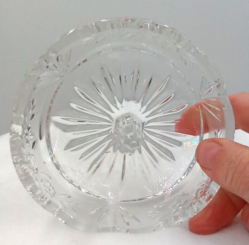 Vintage Crystal Rose Ring Holder Clear Glass Jewelry Dish