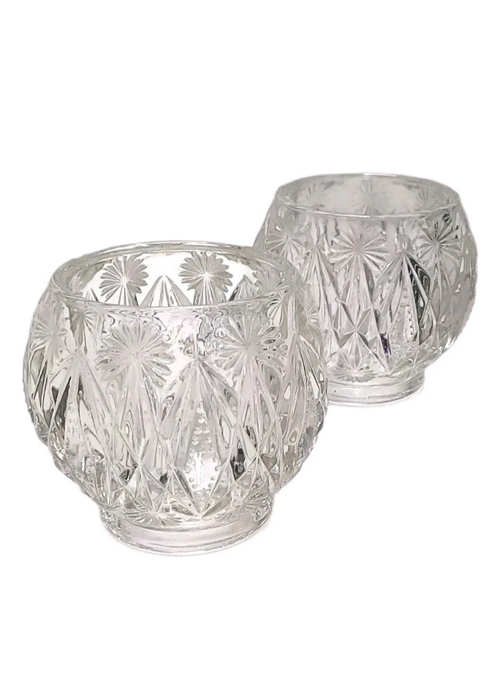 Vintage Crystal Starburst Diamond Pattern Votive Holders, Set Of Two By Avon