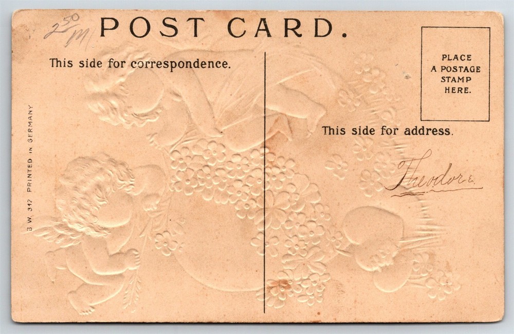 Vintage Cupid Heart Arrow Embossed Valentine Postcard C1900s AC2