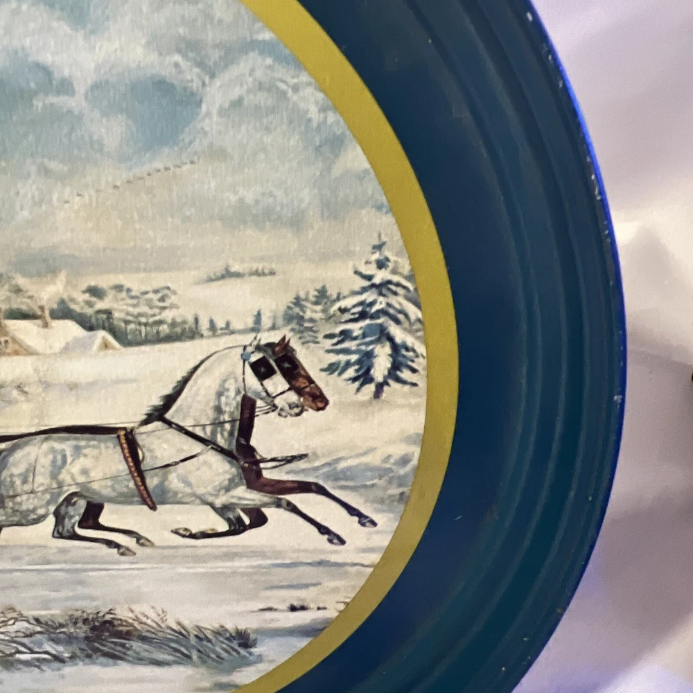 This vintage Currier & Ives tin features a beautiful winter horse drawn sleigh, perfect for your Christmas greetings. The intricate design is sure to impress and add a touch of nostalgia to your collection. Made for collectors of vintage greeting cards, this piece is a must-have for anyone who appreciates the art of hand-crafted cards. The tin is perfect for storing your collection or for use as a decorative piece. Get your hands on this unique piece today and add a touch of history to your Christmas card collection.