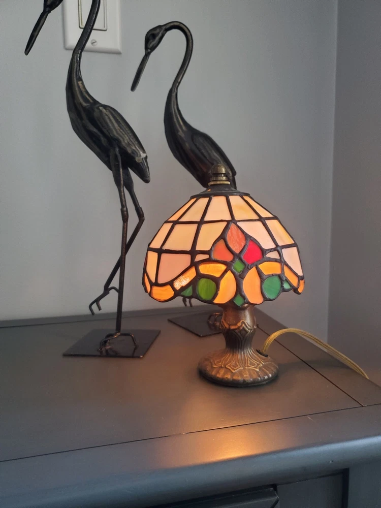 This vintage Dale Tiffany desk lamp is a beautiful addition to any collection. The lamp features intricate details and a unique design that is sure to catch the eye. Made by the renowned brand, Dale Tiffany, this lamp is a high-quality piece that will provide years of enjoyment. Perfect for collectors of lamps and lighting, this piece is a must-have. The lamp is ideal for adding a touch of elegance to any room and is sure to impress guests. Don't miss out on the opportunity to own this stunning vintage Dale Tiffany lamp.