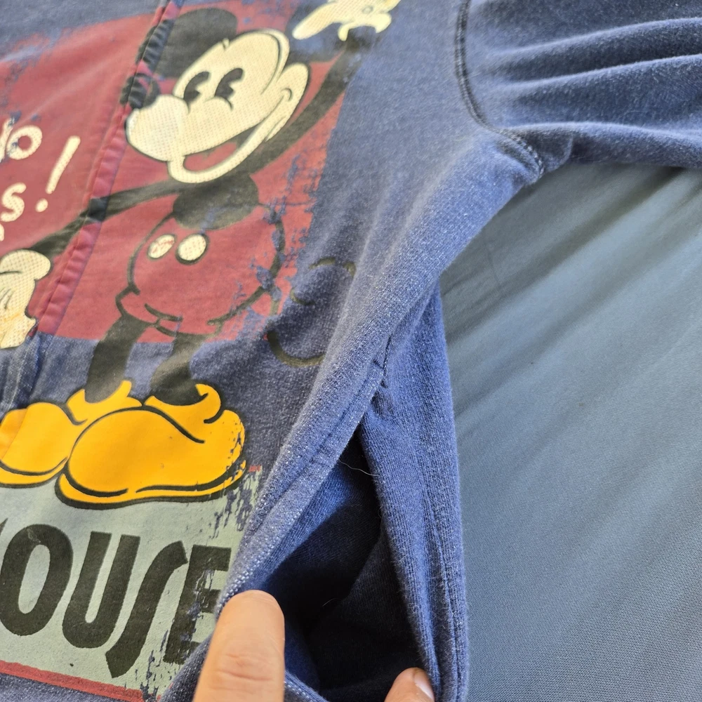 This Vintage Disney Store Mickey Mouse Hello Folks! Full Zip Size Large Retro Hoodie is a nostalgic piece of activewear with a cartoon theme and 90s retro style. Made from a blend of polyester and cotton, this hoodie features the iconic Mickey Mouse character with a graphic print and hooded design. The full zip closure and Crew Neck neckline make it easy to wear in all seasons, while the breathable material ensures comfort during various activities like gym training, walking, and running. Perfect for unisex adults who appreciate classic Disney characters and vintage style, this hoodie is a must-have for fans of Mickey Mouse and retro fashion.