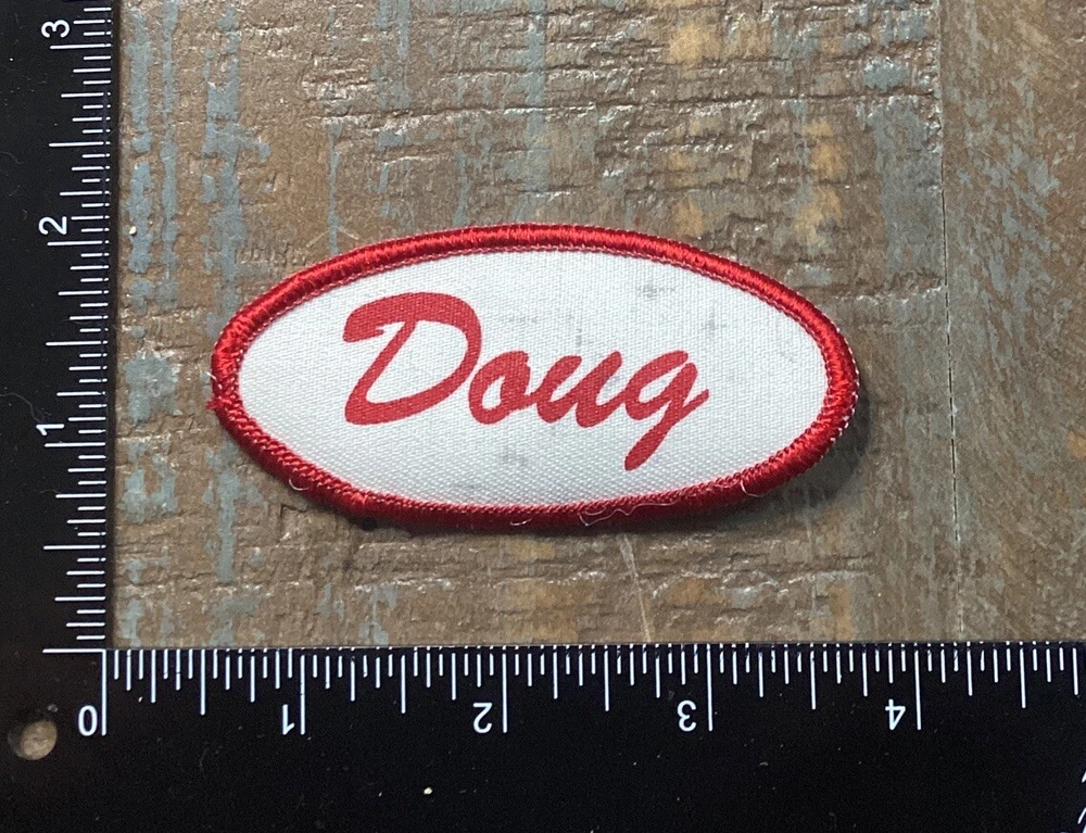 Vintage DOUG Name Tag Work Shirt Job Uniform Printed Iron-On Patch Red