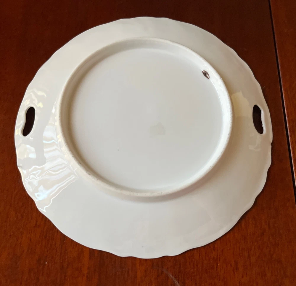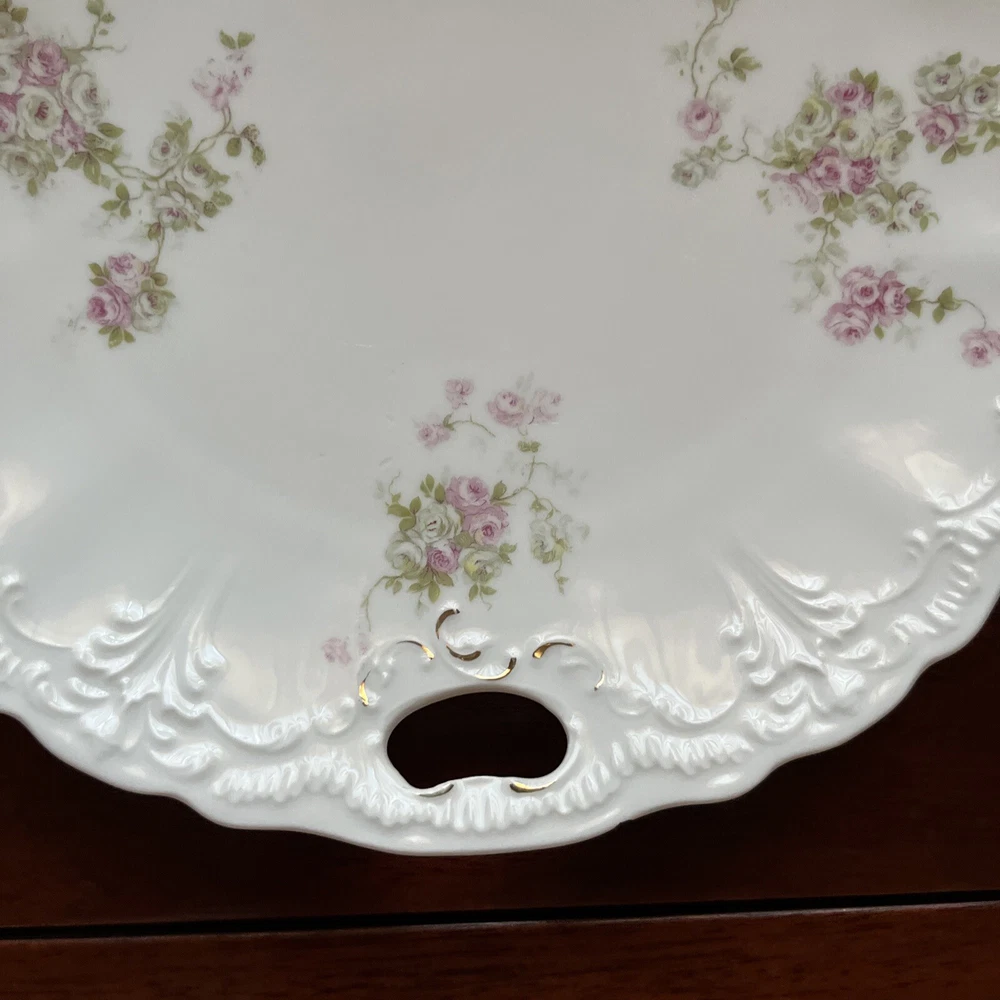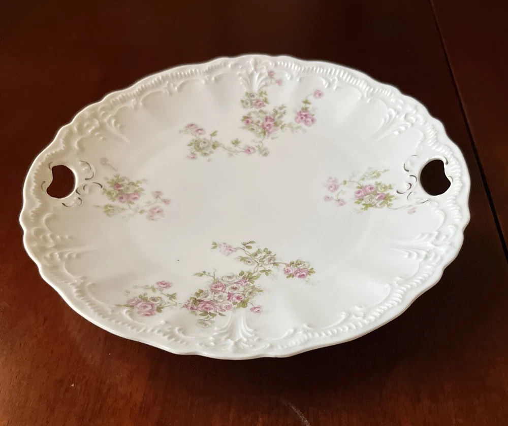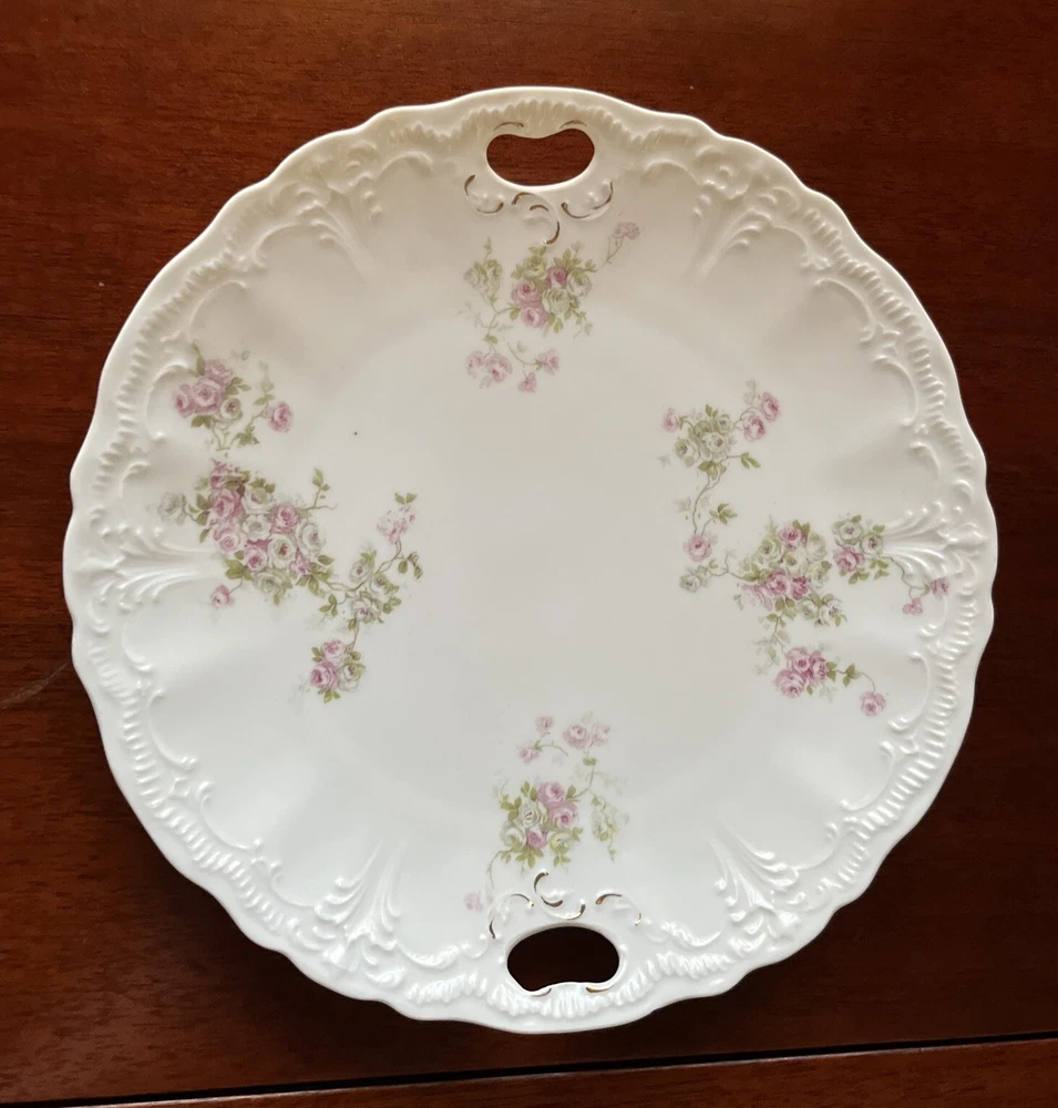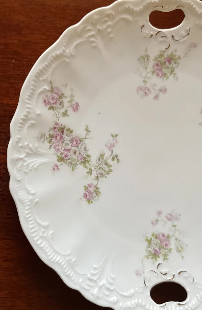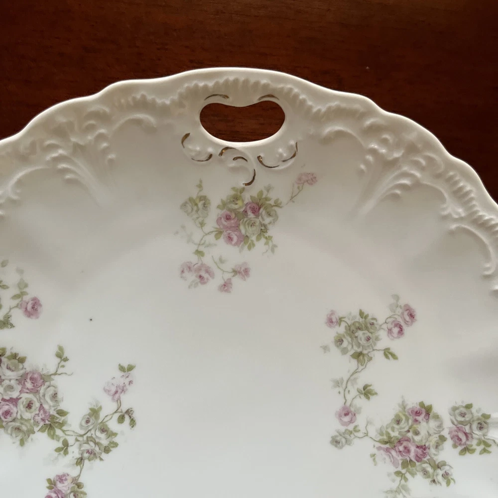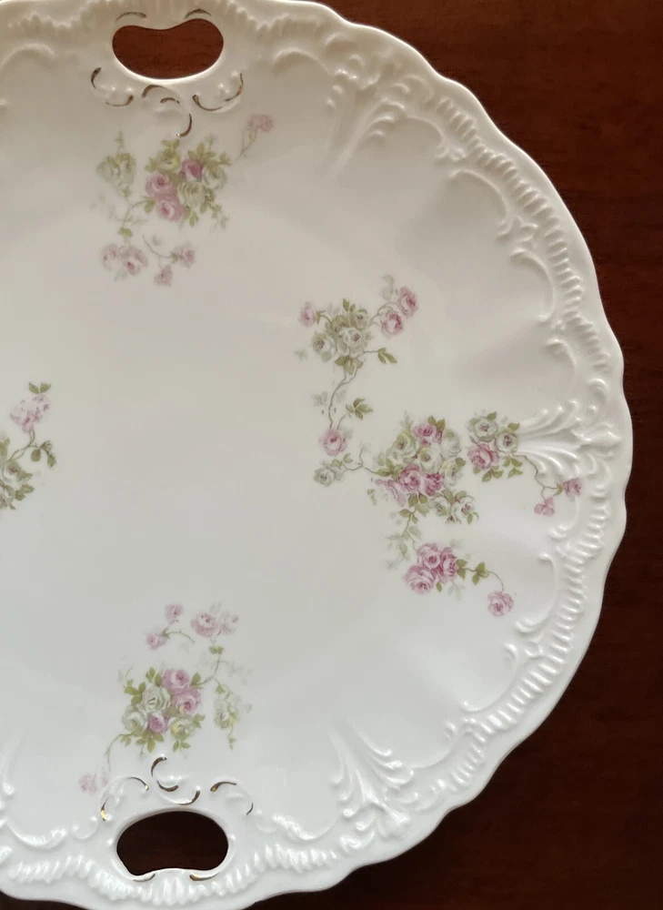 Vintage Dainty Round China Serving Plate with Pink Flowers and holes for Handles - 9” diameter Please review all pictures carefully as they are part of the description. Questions are welcome.