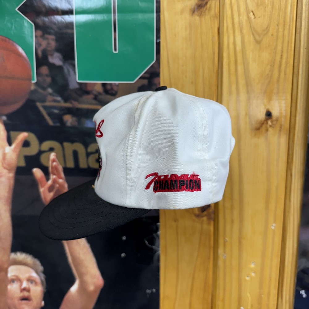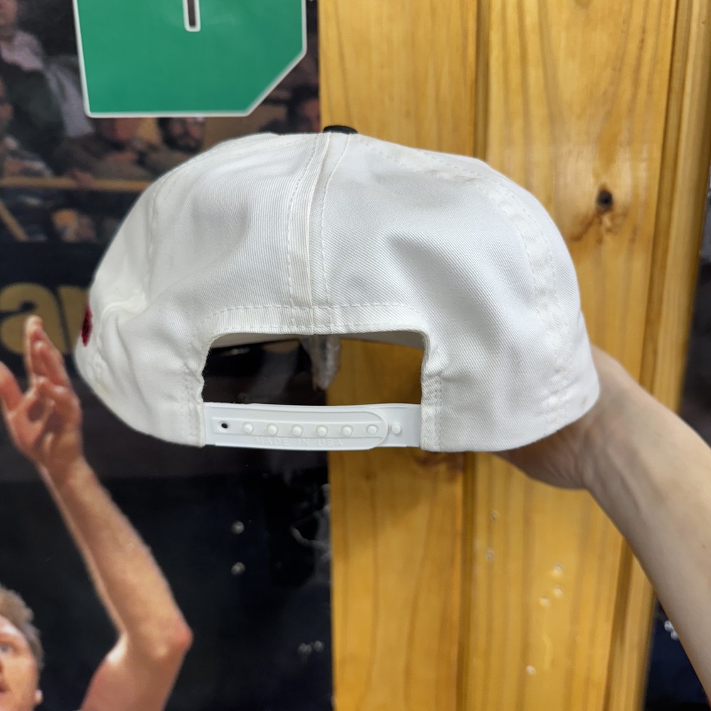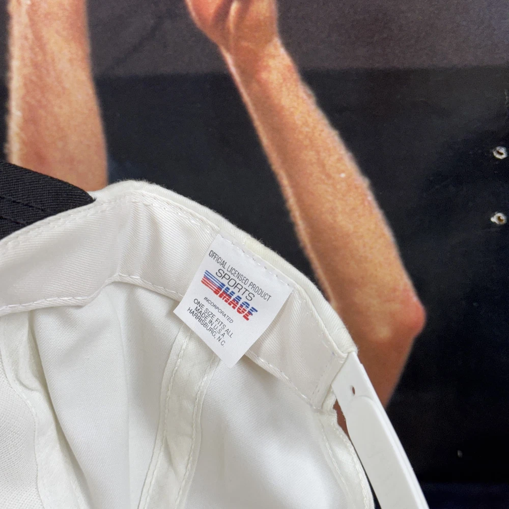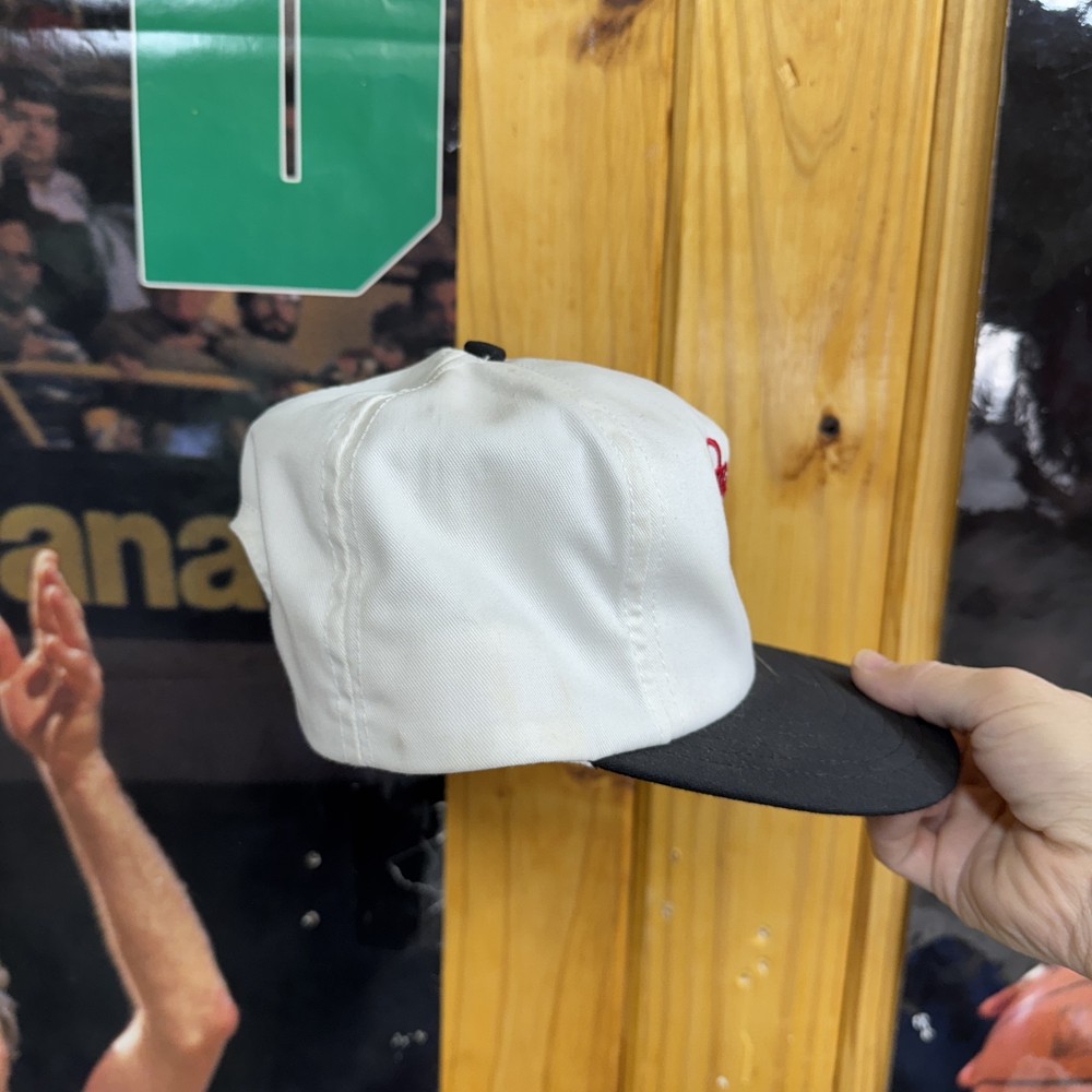 Vintage Dale Earnhardt Hat Cap Snap Back White Black NASCAR Racing Mens Champion 90s Condition: Good vintage condition, light wear with a small faint stain on the front brim and some discoloration on the side panel as shown in photos. No major flaws. White crown with black brim and snap back closure Front features embroidered Dale Earnhardt signature, number 3, and GM Goodwrench Monte Carlo NASCAR embroidery Side panel has embroidered "7 Time Champion" text Classic 90s racing hat style Made in USA, marked one size fits all, soft inner sweatband Official licensed product Sports Image Great display piece or addition for any NASCAR/Dale Earnhardt memorabilia collector Please see photos for details on condition and design