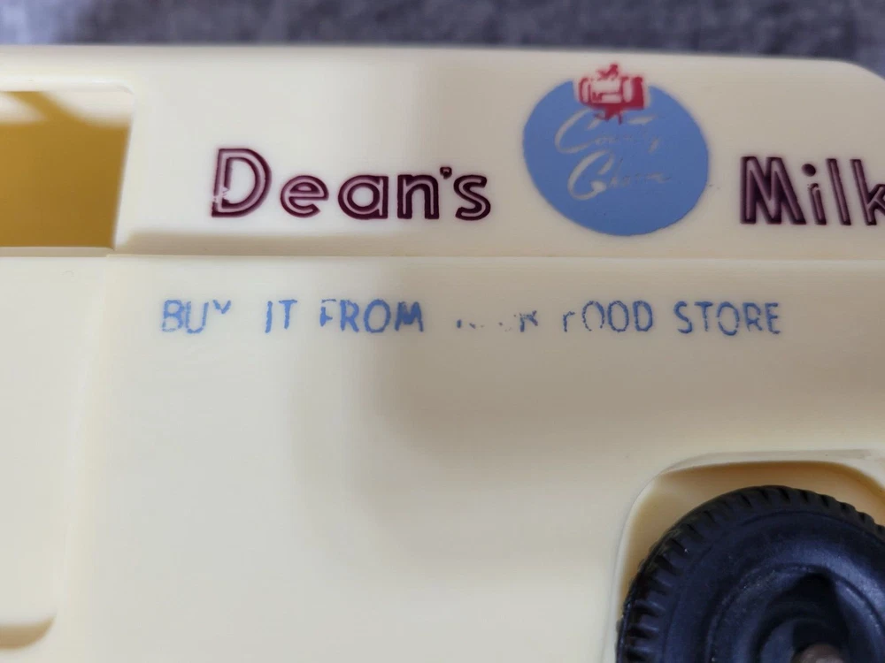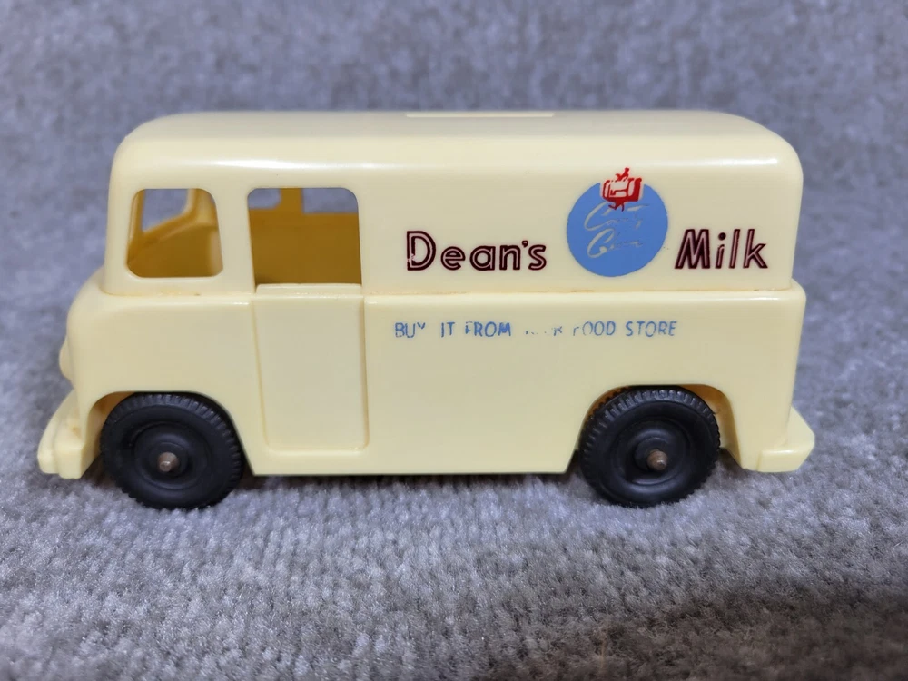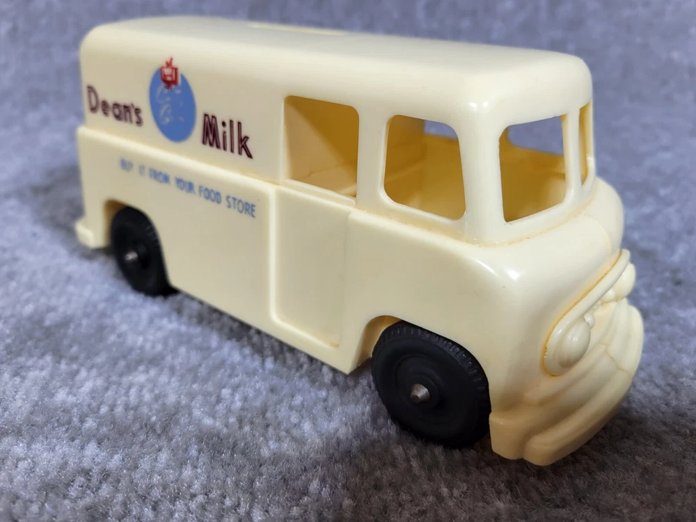 Vintage Deans Country Charm Milk Truck Advertising Plastic Bank RARE SEE ALL PHOTOS AS THEY ARE PART OF THE CONDITION AND DESCRIPTION. Good preowned condition with the following: chunk missing out of the left back bumper, scratches/scuffs, worn graphics and faded in spots, crack in the roof on back left side. Shelf: ZZZ