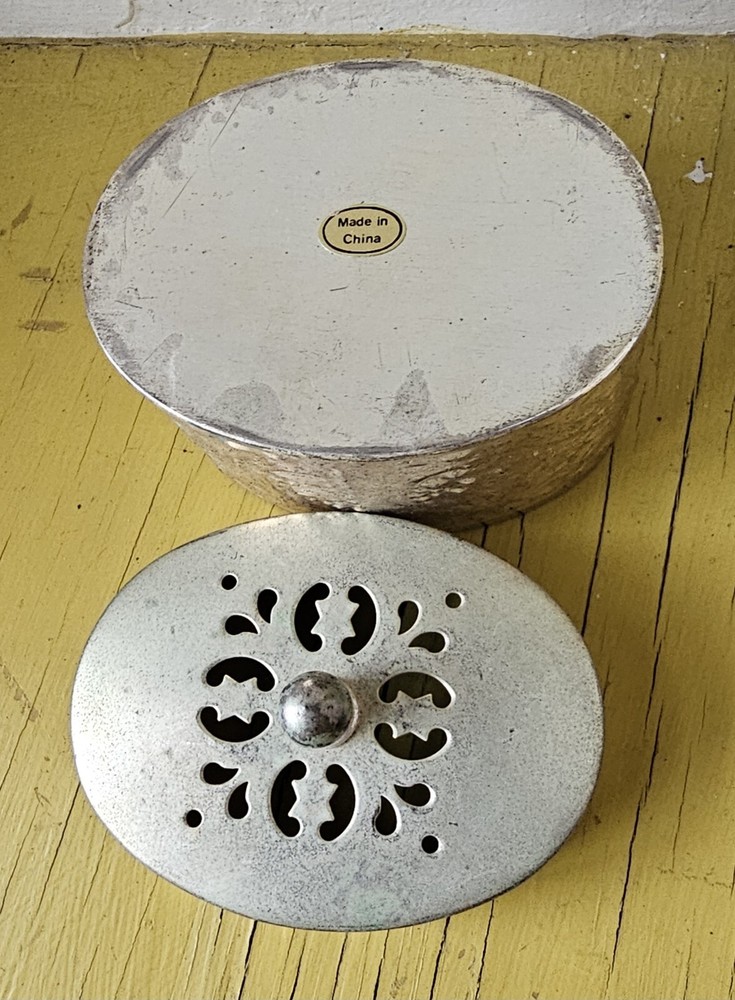 Collection: Keepsake Boxes Color: Silver Department: Adults Care Instructions: Clean with Damp Cloth Suitable For: Furniture Size: Small Finish: Metallic Brand: Unbranded Handmade: No Occasion: All Occasions Type: Trinket Box Customized: No Engraved: No Features: Boxed Original/Reproduction: Original Shape: Oval Material: Metal