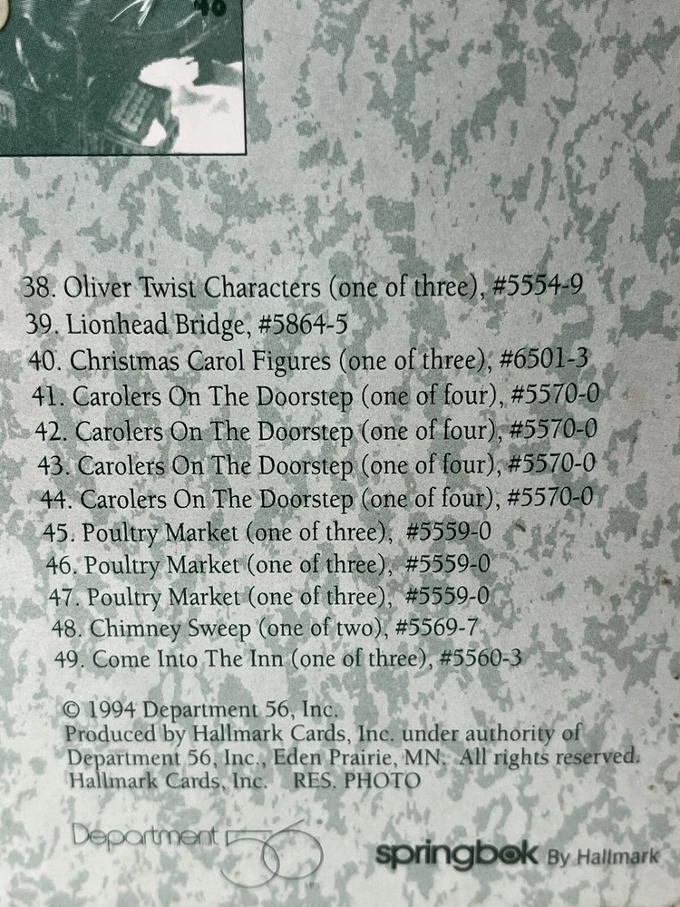 Subject: Villages Collection: Dickens Village Theme: Village Year Manufactured: 1994 Occasion: Christmas Type: Christmas Village Material: Cardboard Brand: Department 56