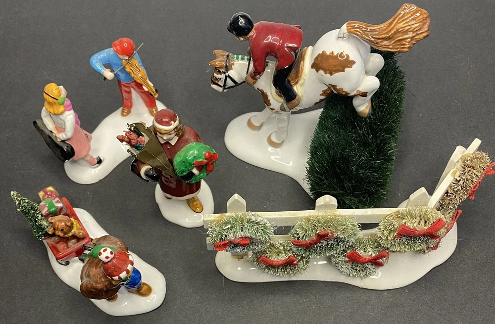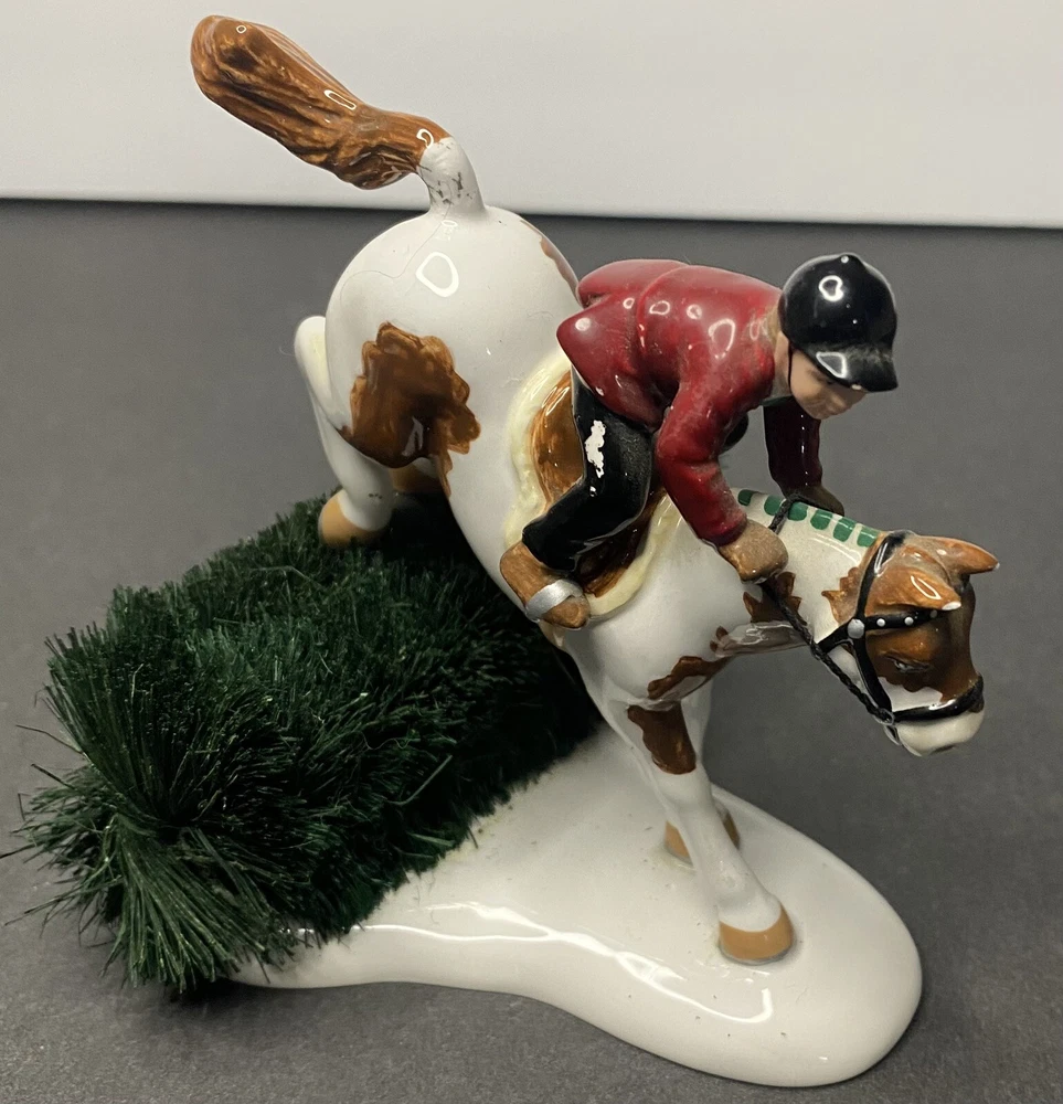 Dept 56 Bucks County Horse Riding (horse only) Mixed Lot As Is. Paint damage and some chips, see photos for condition of items. The fence is discolored. Thanks for viewing.