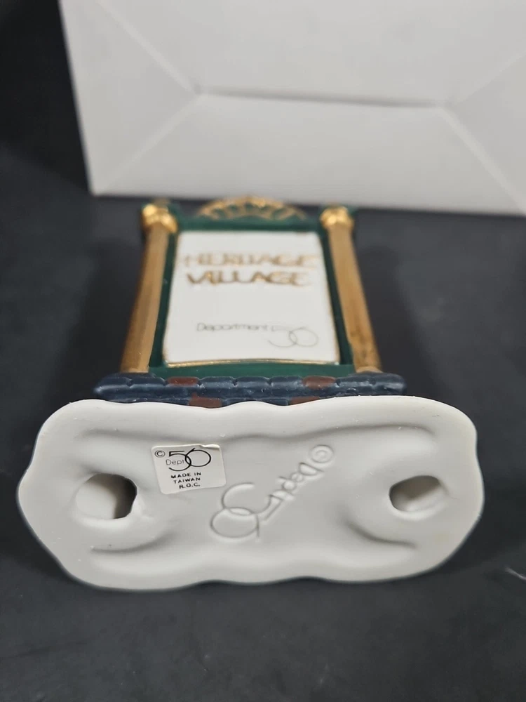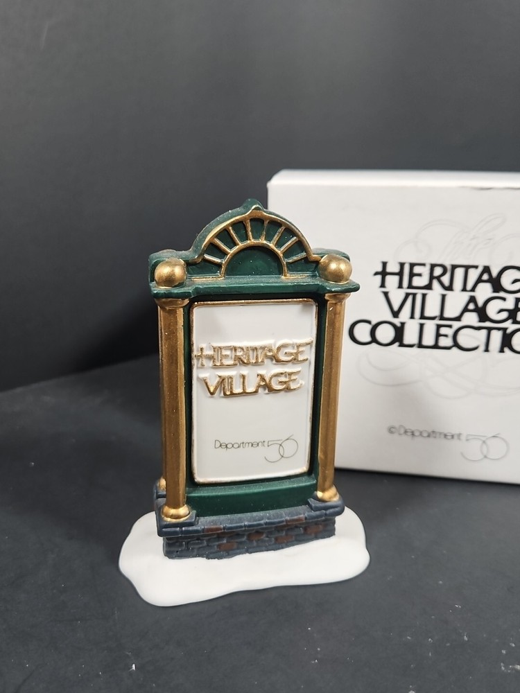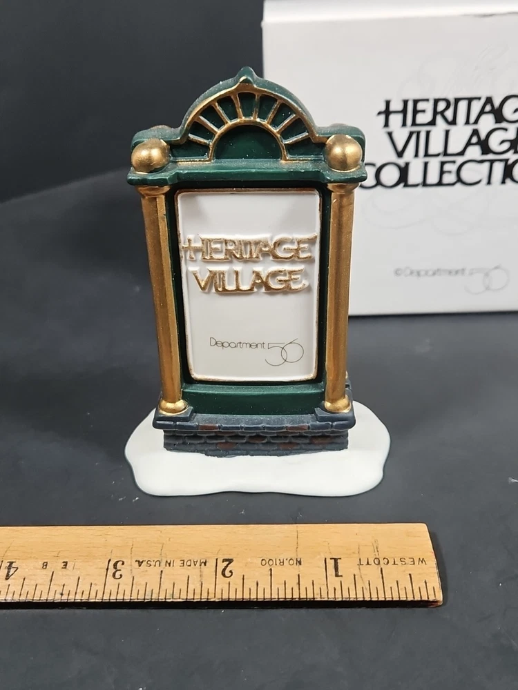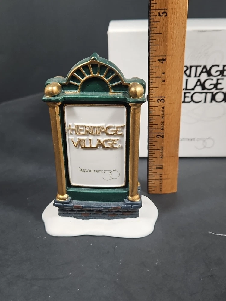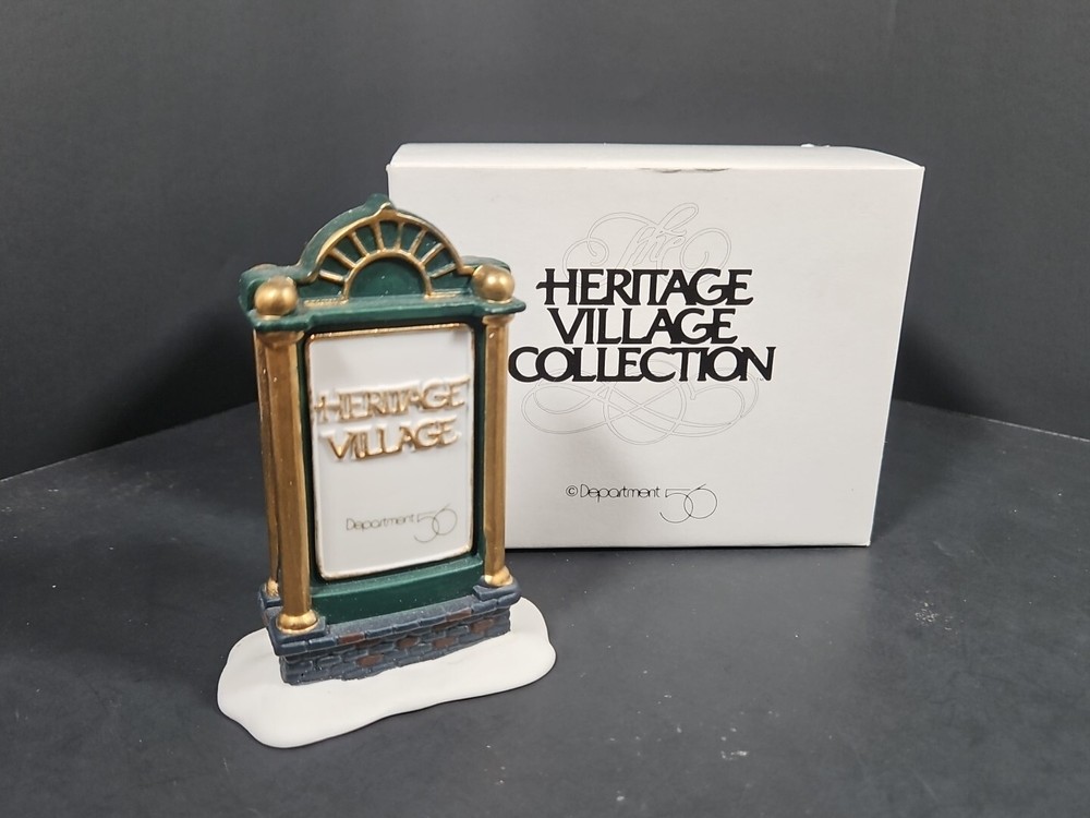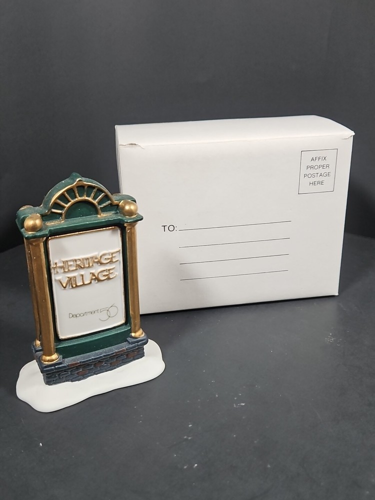 Vtg Dept 56 Heritage Village Collection Accessories Sign 9953-8 Original Box Opened for display purposes. See pictures. Light markings from age and storage. Product will be shipped timely and packaged with care. Offers are encouraged. Please feel free to reach out with questions. Please see pictures. Thank you. This vintage Department 56 Heritage Village Collection accessory is perfect for adding a touch of Christmas cheer to any room. The sign, with its green snow-frosted color and gold ribbon accent, is a great addition to any Christmas display. It is an original piece from the 1990s, and is suitable for fall, winter, Thanksgiving, and Christmas. The sign is part of the Heritage Village collection and is an authentic, retired accessory. It is ideal for use in a Christmas village display, with its Victorian-era style and North Pole Village theme. This package includes one sign, measuring 3 inches in height, and comes in its original box. Multiple available. Will receive similar pictured in good used condition. Various wear and markings on box. See pictures.