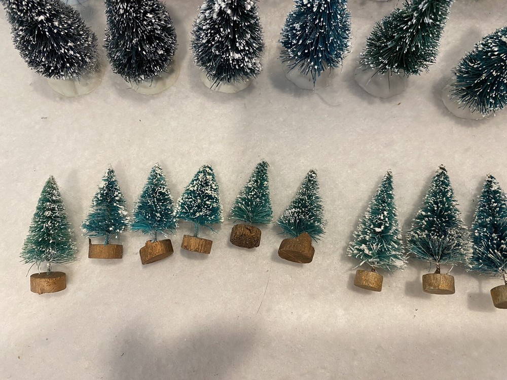 Dept 56 & Lemax Lot Of 27 Trees 1-3/4”-5.5” Good Used Cond, Snow Flecked See pictures for full description Bin A2
