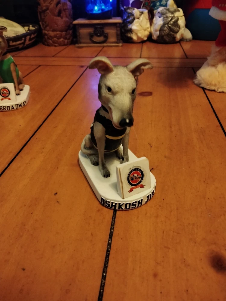 This vintage Derby Lane St Petersburg Greyhound Dog Bobblehead, model "Oshkosh Juliet" #8, is a must-have for any collector of greyhound racing memorabilia. Featuring Keefer, a lovable dog character, and a colorful multicolor design, this bobblehead is an exclusive item from the Derby Lane collection. With its unique theme of dog track and sport of greyhound racing, this Match-Up brand bobblehead is a rare find for any fan of the sport. Whether you're a collector or simply looking for a unique piece to add to your home, this vintage Derby Lane bobblehead is sure to impress.