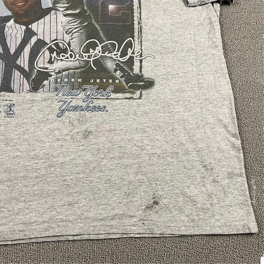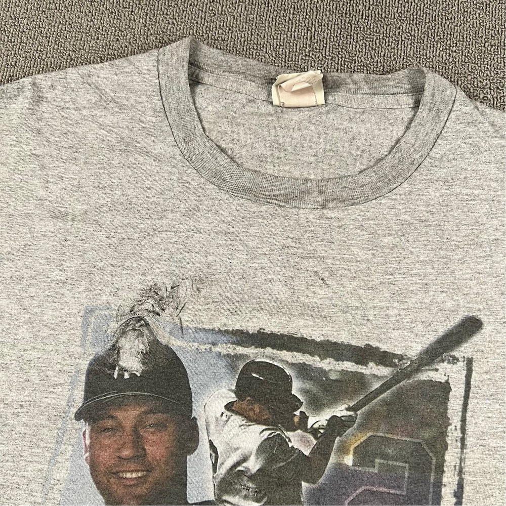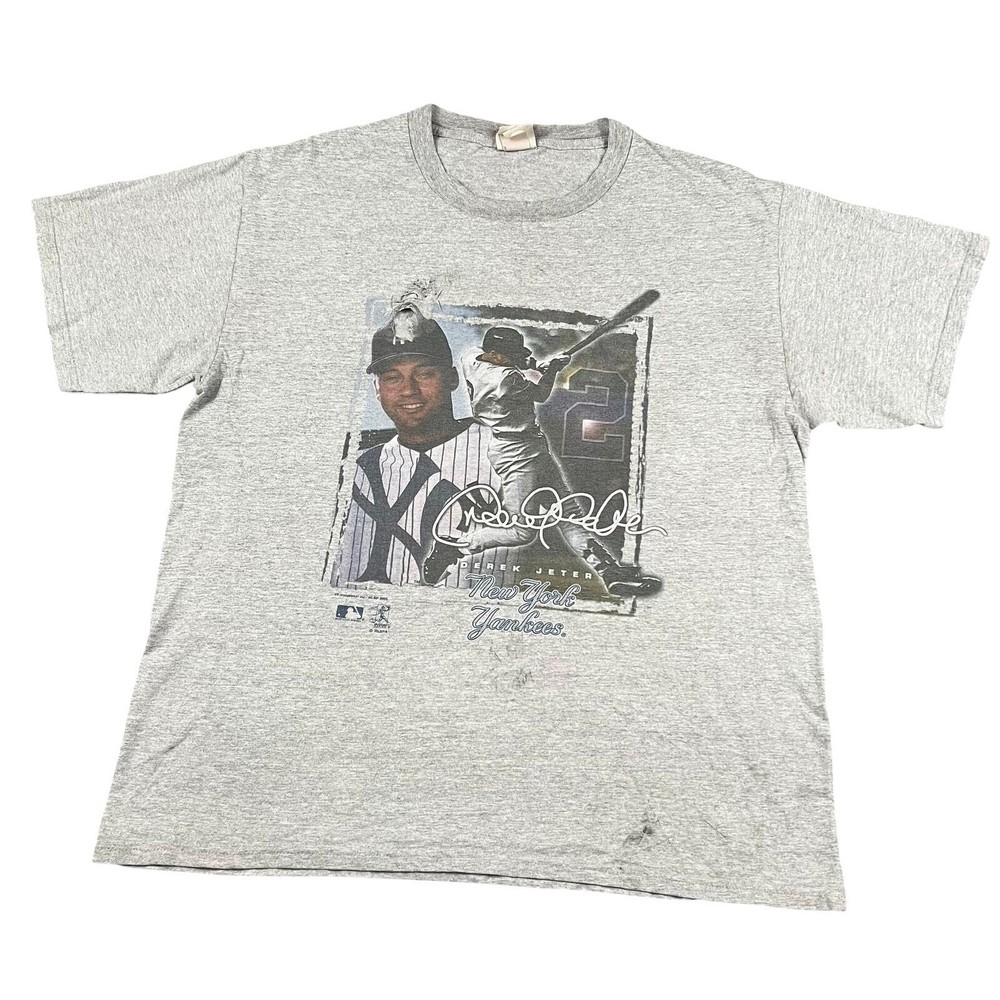 Vintage Derek jeter gray mlb Yankees y2k baseball t shirt. Nice one but has that hole. Measures 23.5x28.5. Please check measurements before purchasing. I do my best to show any flaws in pictures. Quick shipping! Bundles encouraged! @ants_haul on Instagram.