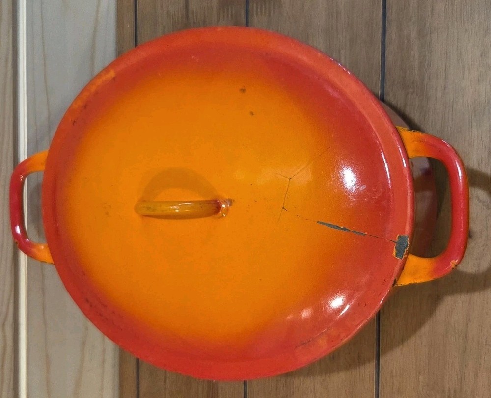 VTG cast iron enamel oval Dutch oven. Chipping to enamel on interior as noted in photos