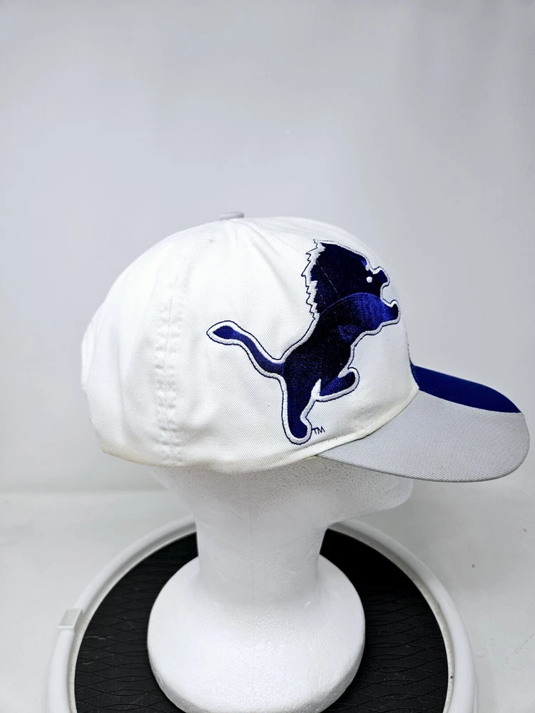 Vintage Detroit Lions Embroided Swirl Spellout 90s Logo 7 Snapback Hat NFL Used
