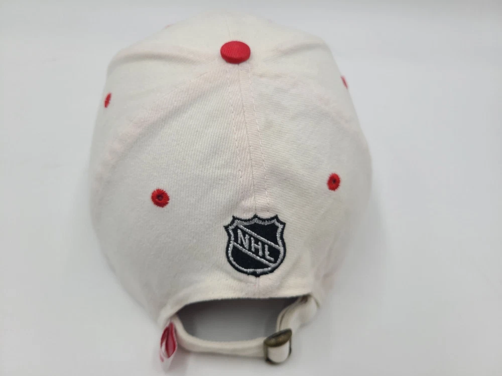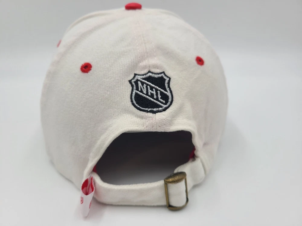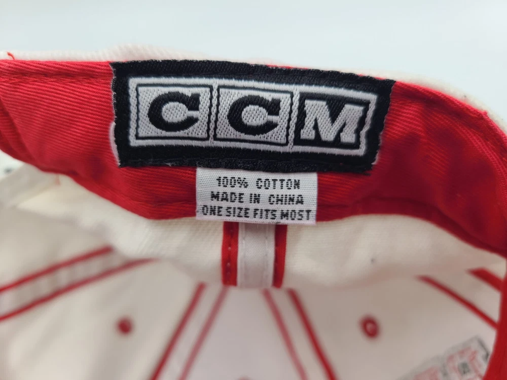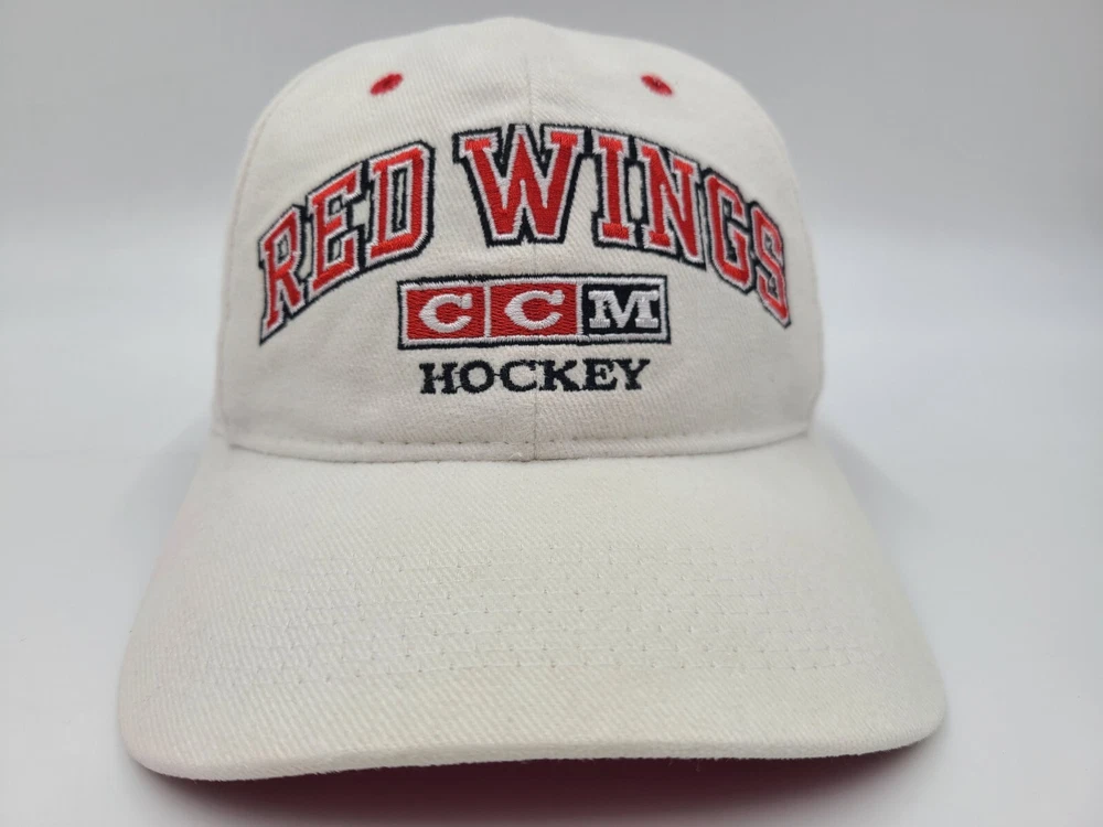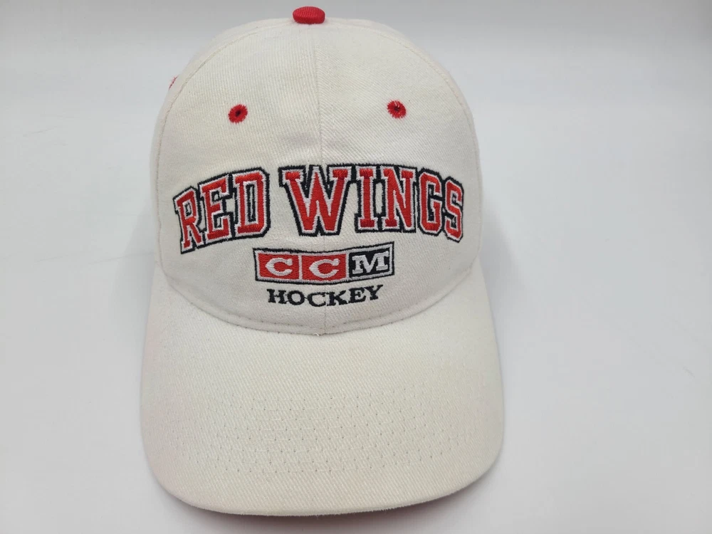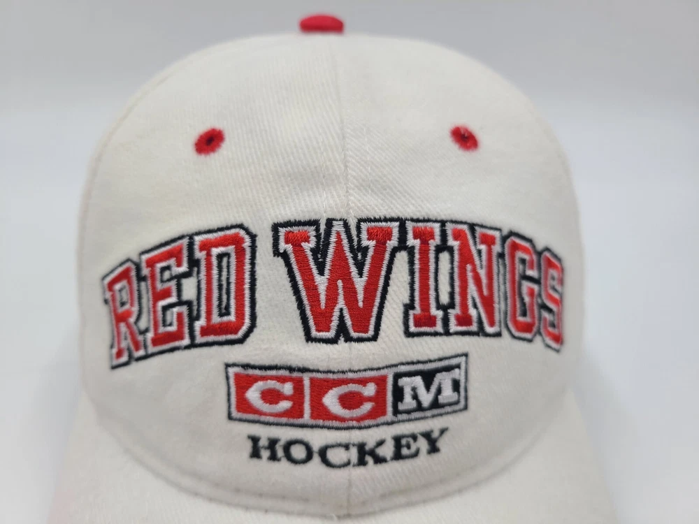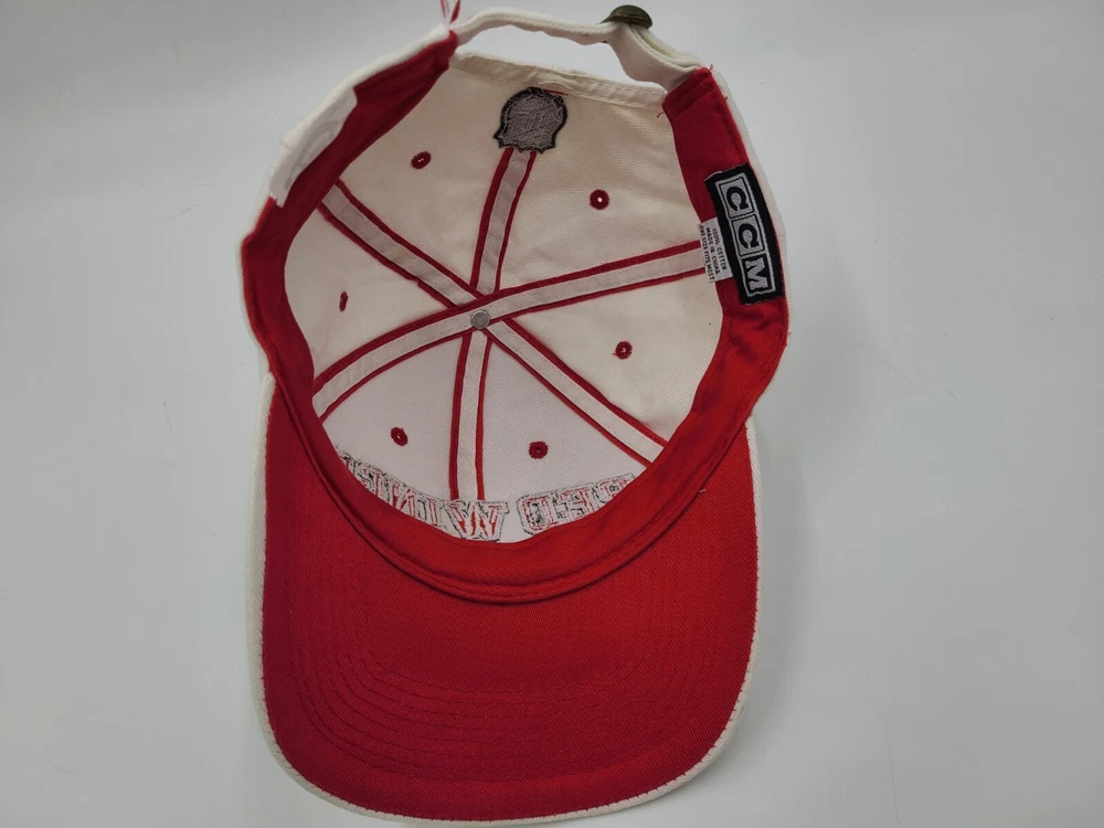 The tag says one size fits most, but it seems best suited for smaller sized heads. Also has stains/discoloration on the brim, front, and sides as seen in photos. Vintage Detroit Red Wings CCM Strapback Adjustable (Seems Small) Hat Cap Men NHL. EACH ADDITIONAL HAT PURCHASED IS ONLY $1 ADDED SHIPPING!