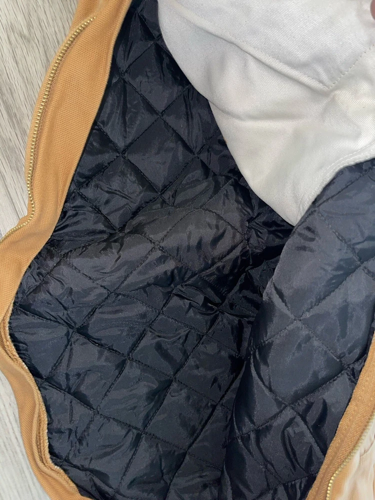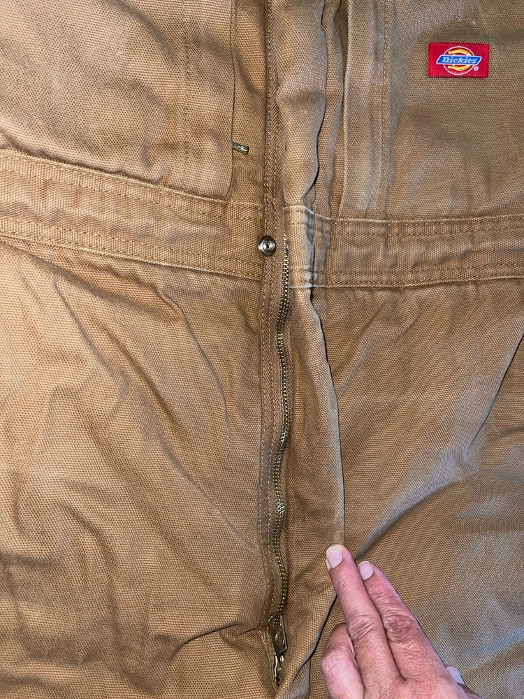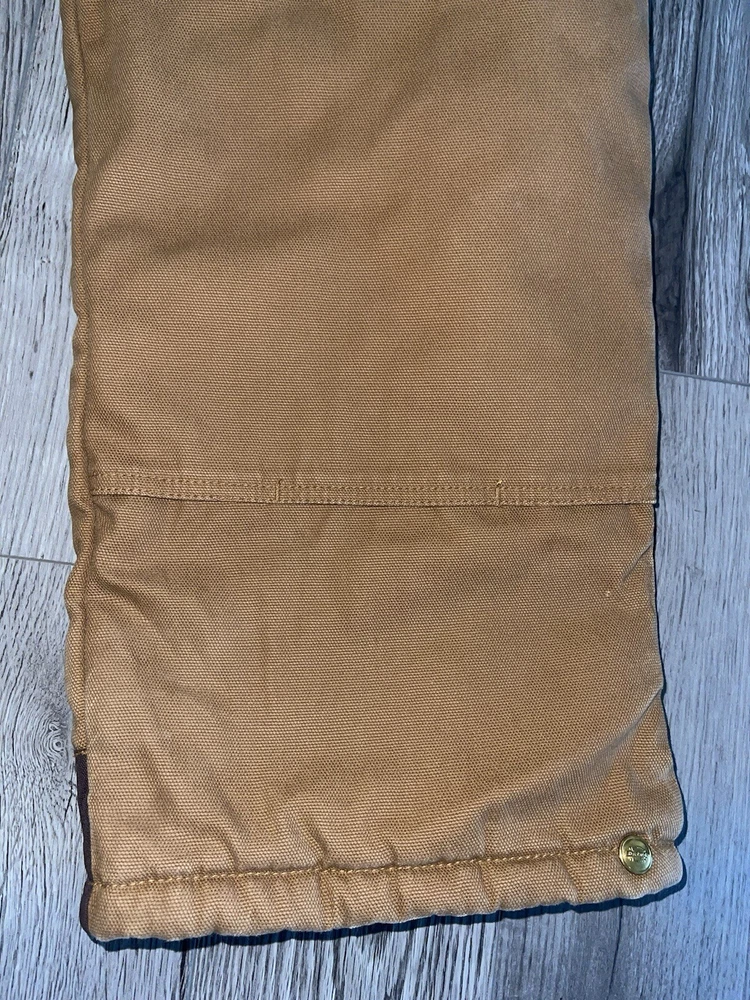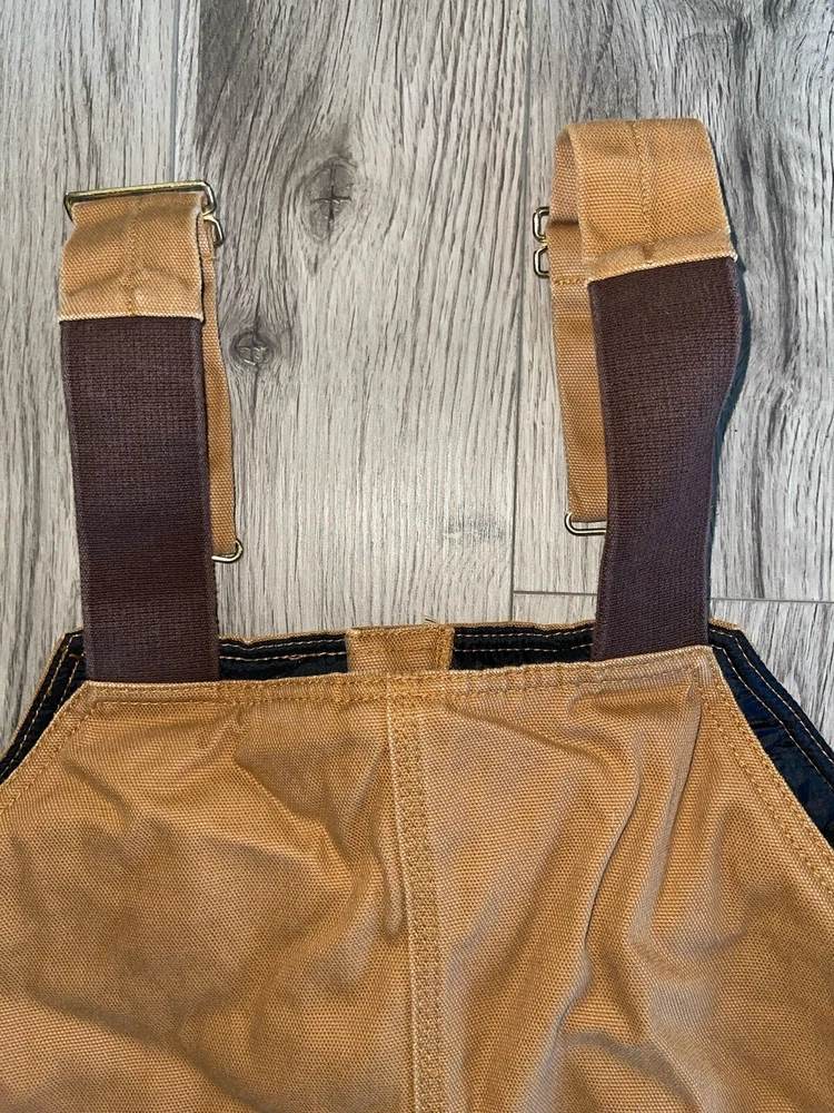 Size Type: Regular Handmade: No Fit: Relaxed Fabric Type: Canvas Type: Trousers Vintage: Yes Theme: Hipster, Logo, USA, Worker Department: Men Colour: Brown Color: Brown Accents: Button, Logo, Quilted, Zip Closure: Buckle, Button, Zip Occasion: Casual, Workwear Front Type: Flat Front Pocket Type: 5-Pocket Design Brand: Dickies Style: Dungarees Garment Care: Machine Washable Material: Cotton, Polyester, Nylon Size: XL Season: Spring, Winter Country/Region of Manufacture: China Features: Comfort, Lined, Pockets, Windproof, With Brace Buttons Inseam: 28 in Leg Style: Straight Pattern: No Pattern Model: Carhartt Style Personalise: No