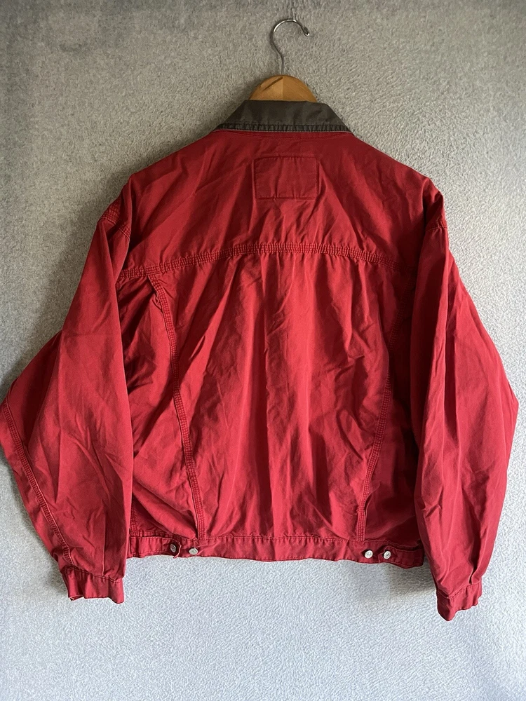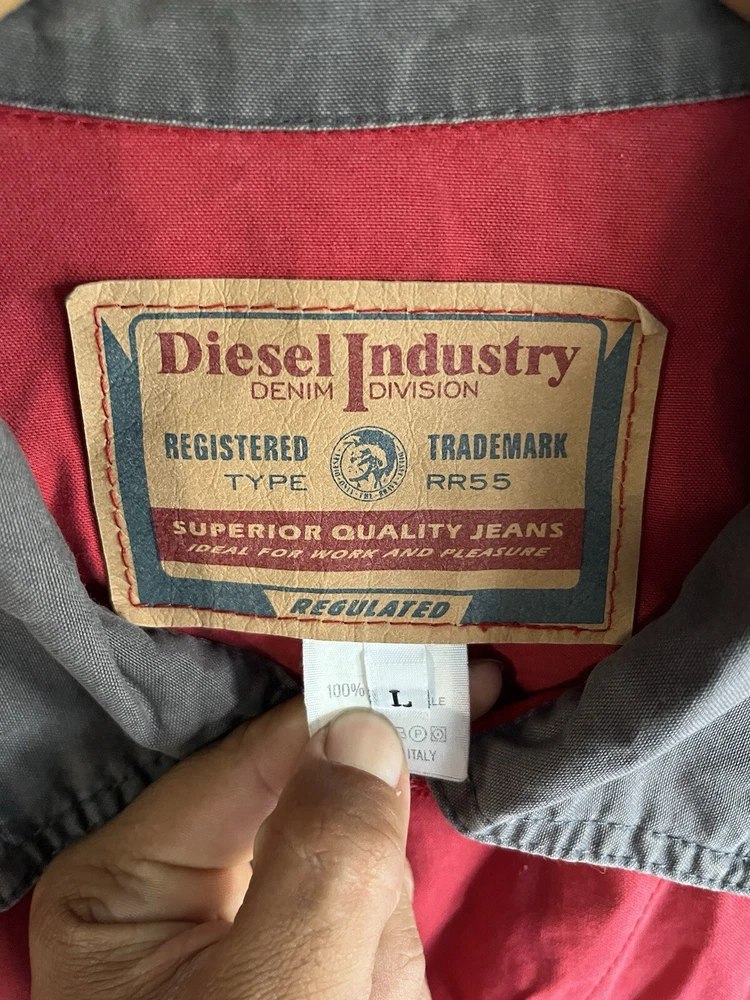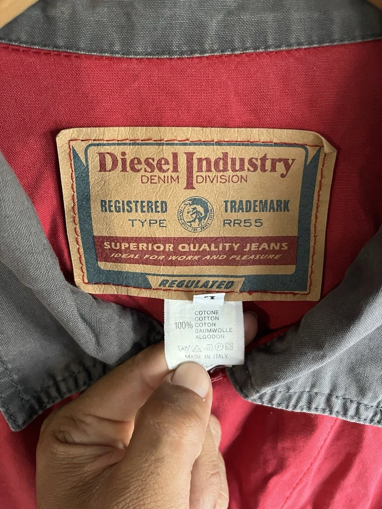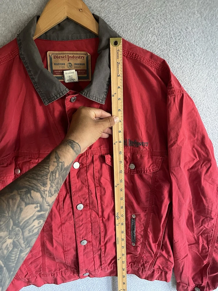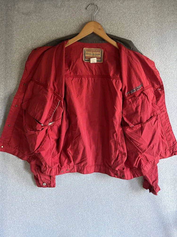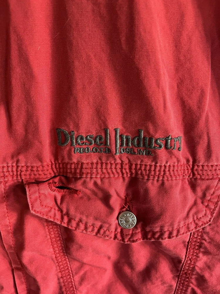 Pattern: Solid Type: Jacket Country/Region of Manufacture: Italy Fabric Type: Denim Accents: Button, Logo Department: Men Style: Jacket Performance/Activity: Walking, Riding, Racing Outer Shell Material: Cotton Size: L Fit: Regular Season: Fall, Winter, Spring Features: Pockets, All Seasons Closure: Button Brand: Diesel Occasion: Casual, Travel, Workwear, Party/Cocktail, Business Color: Red Vintage: Yes Theme: 90s, Motorcycle, City Garment Care: Machine Washable Size Type: Regular