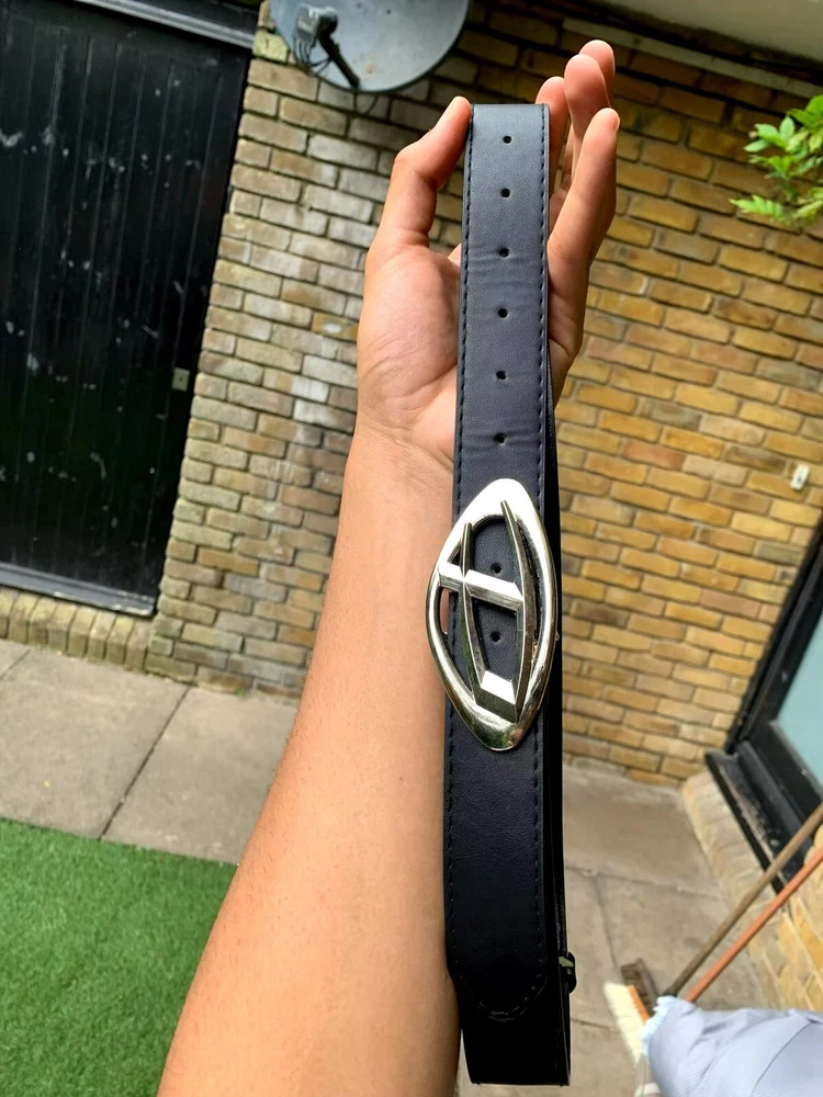 Elevate your style with this vintage Diesel leather belt made in Italy. This belt features a braided/woven design with criss cross accents and studs, giving it a unique and edgy look. The adjustable buckle allows for a comfortable fit, and the pink color adds a pop of color to any outfit. Perfect for men who want to add a touch of personality to their wardrobe, this belt is a must-have. The high-quality leather material ensures durability and longevity, making it a great investment piece. Don't miss out on this opportunity to own a one-of-a-kind belt from a trusted brand.