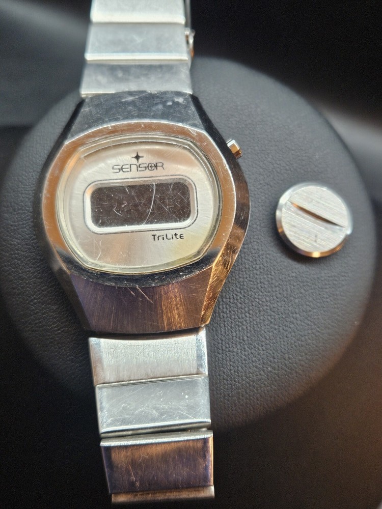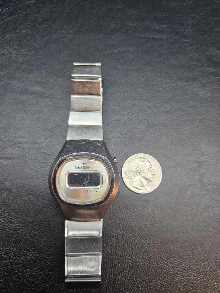SEE PICTURES BEFORE YOU BUY!! Selling a Vintage Sensor Digital Mens Silver Tone Wrist Watch For Parts Or Repair! As Is!! This watch was currently clean, and that's as good as it is going to get, currently not working or tested. It had a battery that was corroded, and it was ckean inside where the battery was, ... I don't think it will work, I don't know, im selling this watch for spare parts , *****sold as is!!!!!!, WHAT YOU SEE IS WHAT YOU GET!!! PLEASE SEE PICTURES FOR CONDITION AND SIZE, FREE FAST SHIPPING!!!!!!!