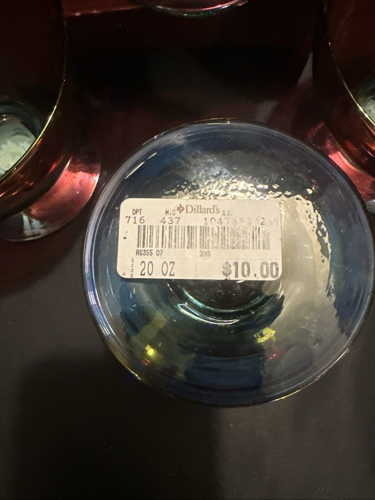 Elevate your dessert experience with this vintage Dillards iridescent 20 oz ice cream dish. Handcrafted with hand-blown glass production techniques, this dish showcases an eclectic style with a multicolor opalescent glass production style that adds a touch of uniqueness to your table setting. Perfect for serving your favorite desserts, this round dish has a capacity of 20 oz and is made of glass, making it durable and long-lasting. Originating from Mexico, this unmarked dish is perfect for those who love vintage glassware. The dish is not antique and is ideal for those who appreciate the beauty of vintage dishes. Whether you are hosting a dinner party or enjoying a quiet evening at home, this ice cream dish is perfect for adding a touch of sophistication to your table setting.