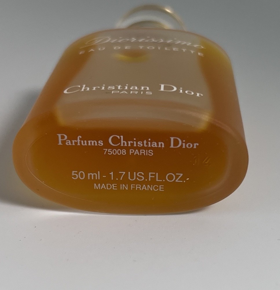 Vtg DIORISSIMO by CHRISTIAN DIOR splash PURE PARFUM 50ml 1.7oz OLD FORM Not sealed box does have damage please see photos.