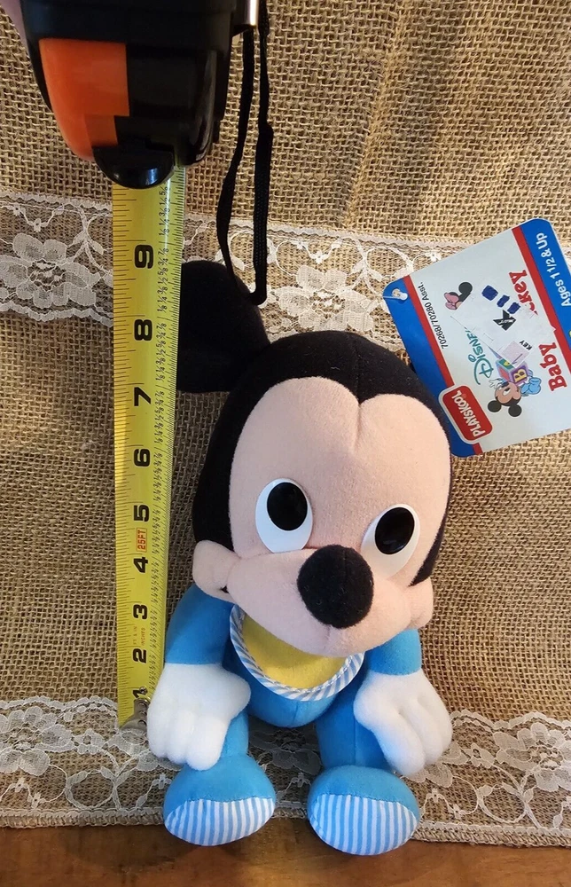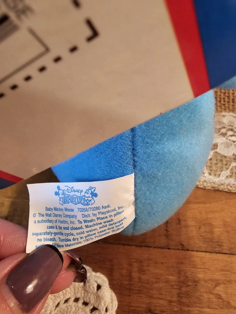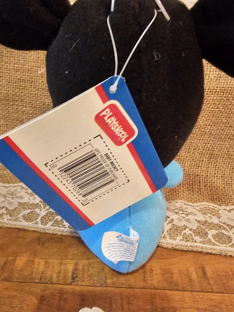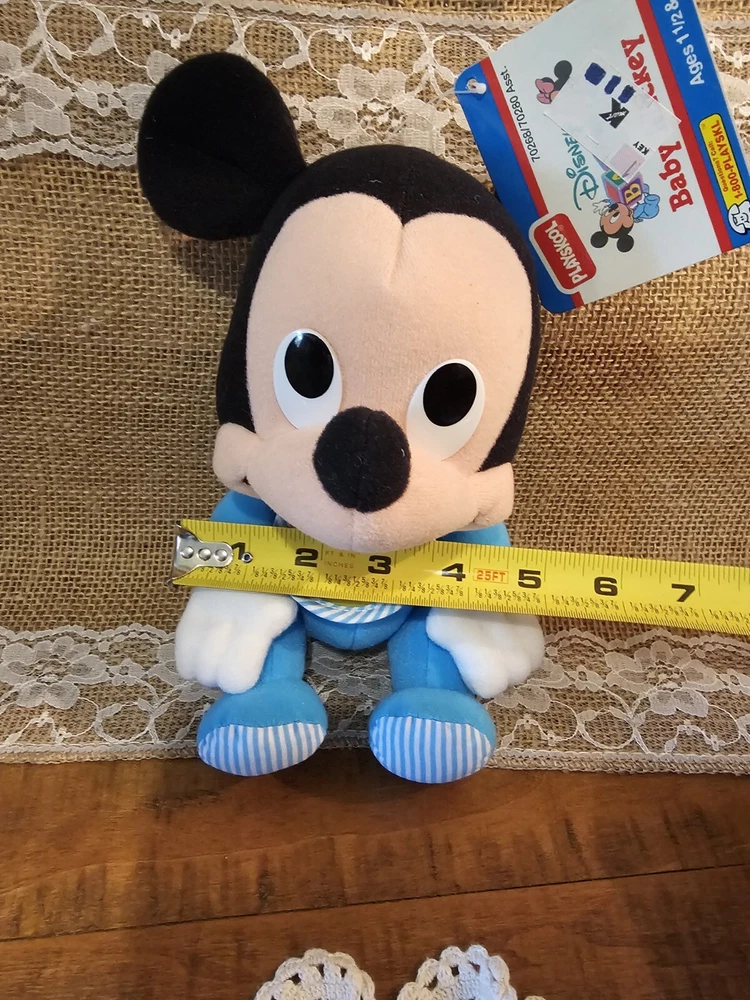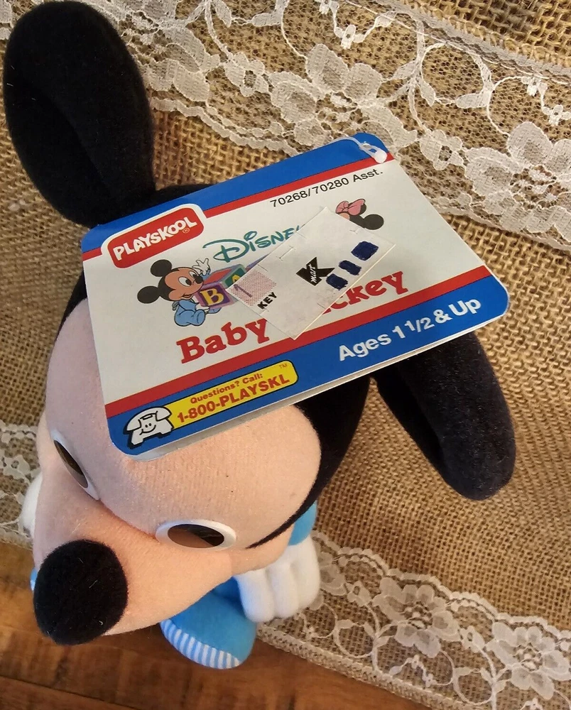 This vintage Disney Babies plush doll from 1984 features the beloved character Mickey Mouse. Measuring 8 inches tall, this doll is a perfect addition to any Disney or plush toy collection. The doll is made by Playskool and comes with a tag, making it a great gift for collectors or fans of the iconic character. The doll is in great shape and has been well-maintained over the years. It is a must-have for any Disney or Mickey Mouse enthusiast. Don't miss out on the opportunity to own this rare and collectible piece of Disneyana history.