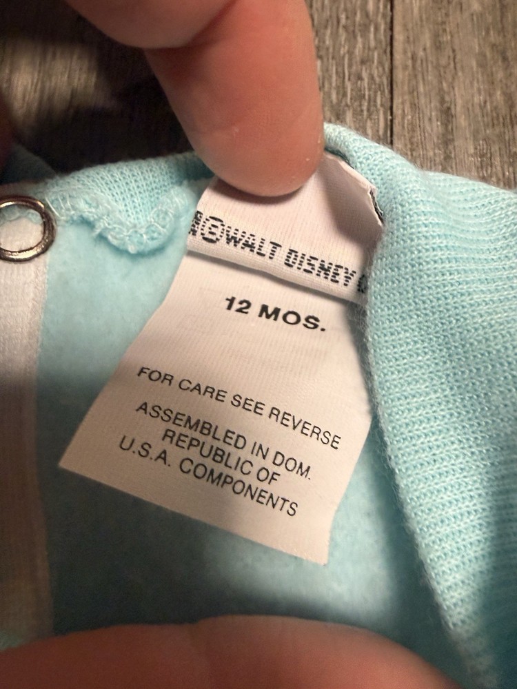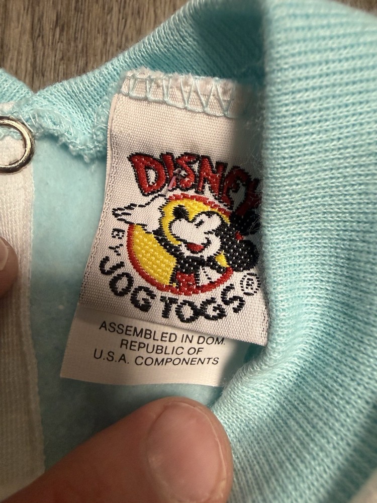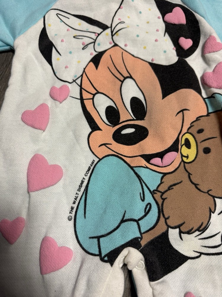 This Vintage Disney Babies Minnie Mouse Romper in size 18 months features a classic solid white color with embroidered Mickey Mouse character. The long sleeves and snap closure make it easy to dress and undress your little one. This one-piece romper is machine washable and perfect for all seasons, adding a touch of nostalgia to your child's wardrobe. Made by Disney, this vintage romper is a must-have for any fan of cartoon and TV characters.