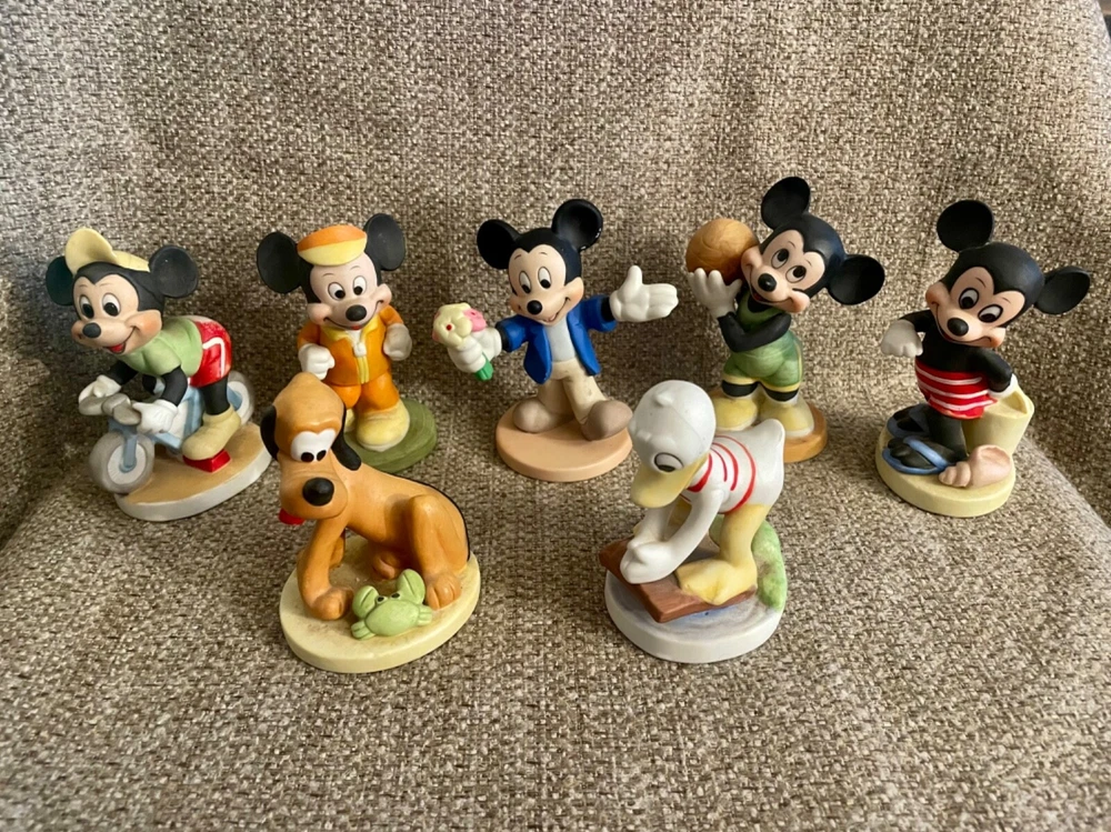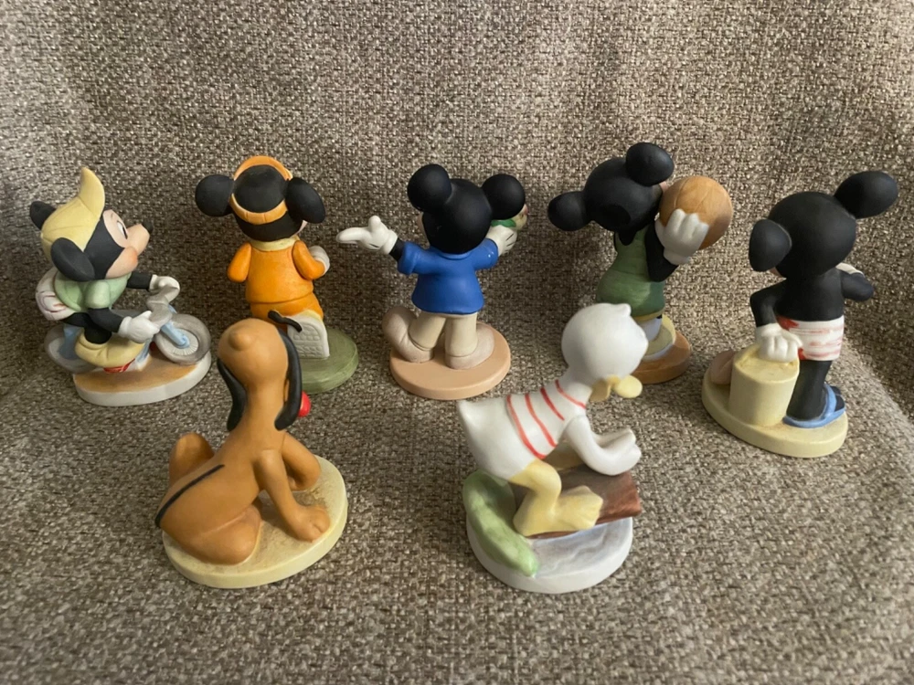 This lot of 7 adorable vintage figurines are perfect for Disney collectors. 3 of the figurines show wear and minor damage. NOTE: the last 2 photos highlight the chips and pieces that were glued back on.